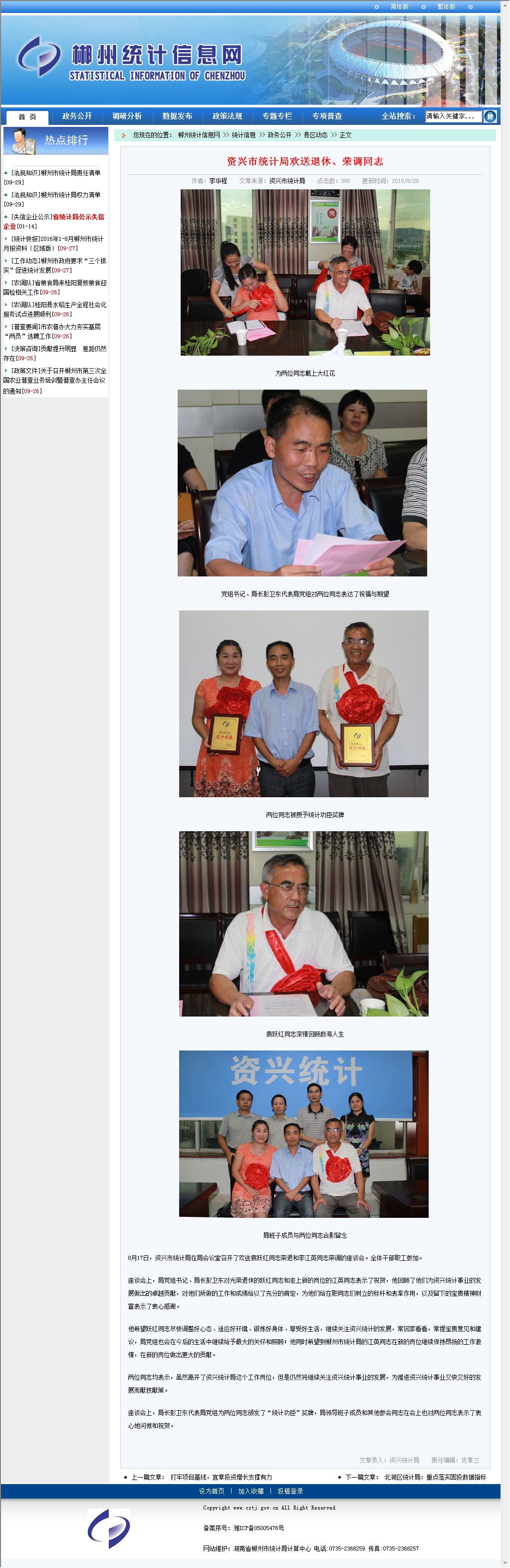 两位同志均表示,虽然离开了资兴统计局这个工作岗位,但是仍然将继续关注资兴统计事业的发展,为推进资兴统计事业又快又好的发展而献技献策。