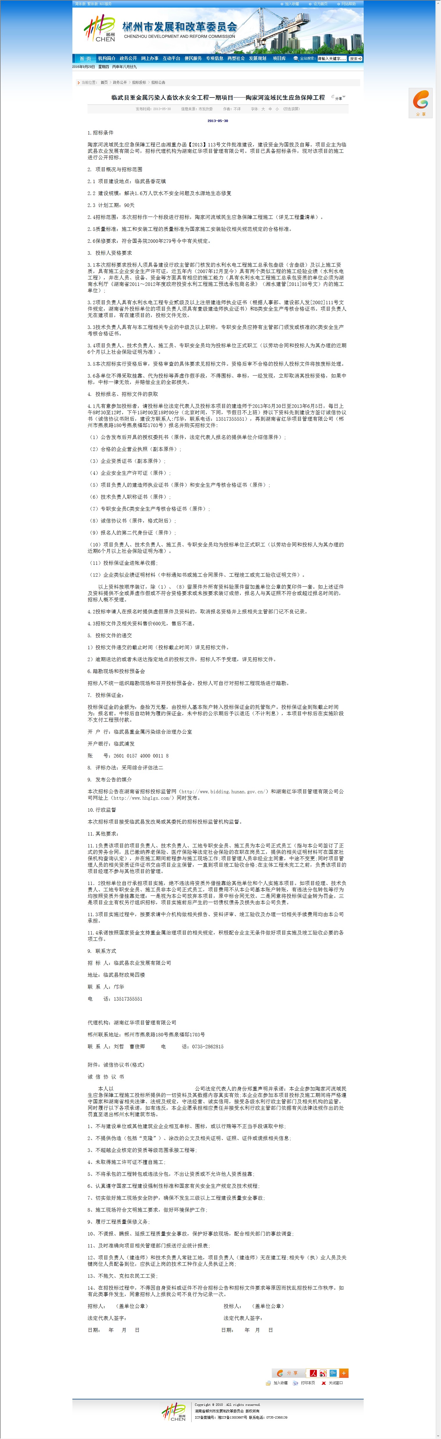 本次招标项目接受临武县发改局或其委托的招标投标监管机构监督。