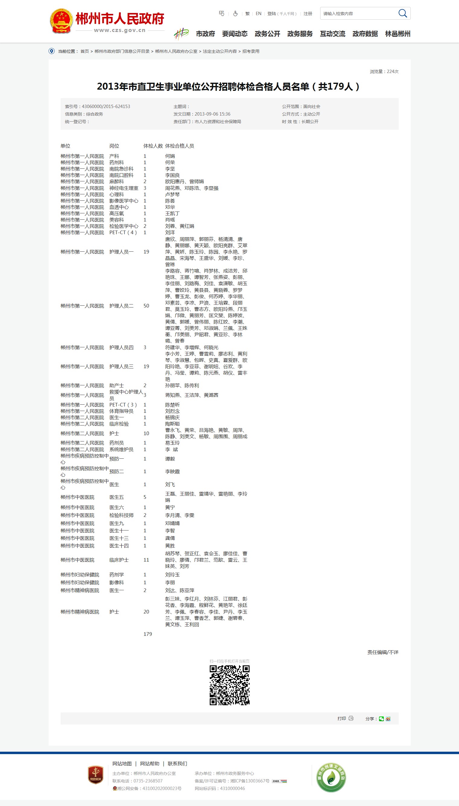 | 郴州市第二人民医院 | 系统维护员 | 1 | 李 斌 |