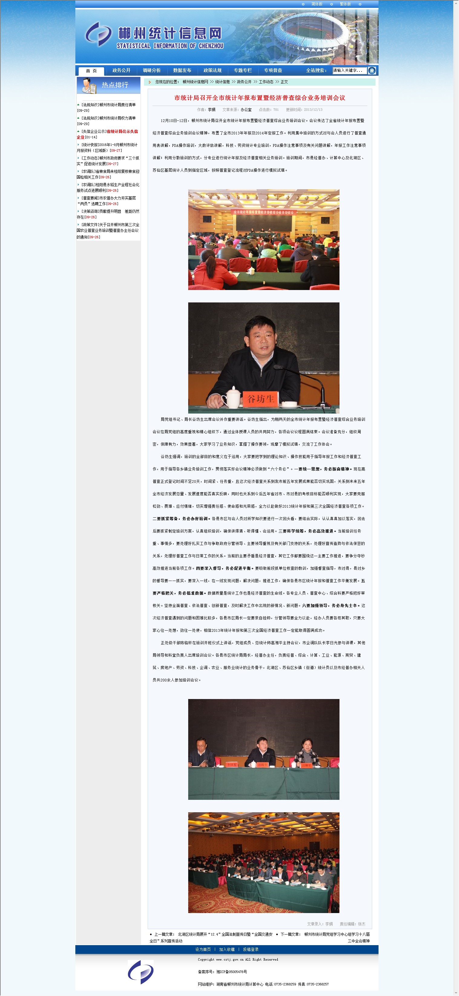 正处级干部陈临轩在培训开班仪式上讲话,党组成员、总统计师高湘平主持会议,市企调队队长李日光参与讲课,其他局领导和科室负责人出席培训会议。各县市区统计局局长,经普办主任,负责经普、综合、计算、工业、能源、商贸、建筑、房地产、劳资、科技、企调、农业、服务业统计的业务骨干,北湖区、苏仙区乡镇(街道)统计员以及市经普办相关人员共200余人参加培训会议。