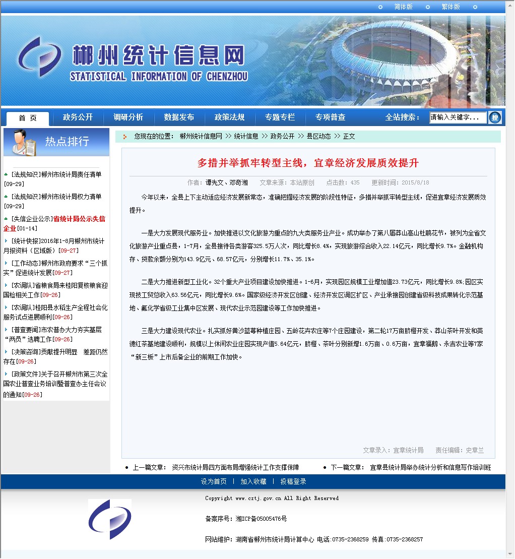 今年以来,全县上下主动适应经济发展新常态,准确把握经济发展的阶段性特征,多措并举抓牢转型主线,促进宜章经济发展质效提升。