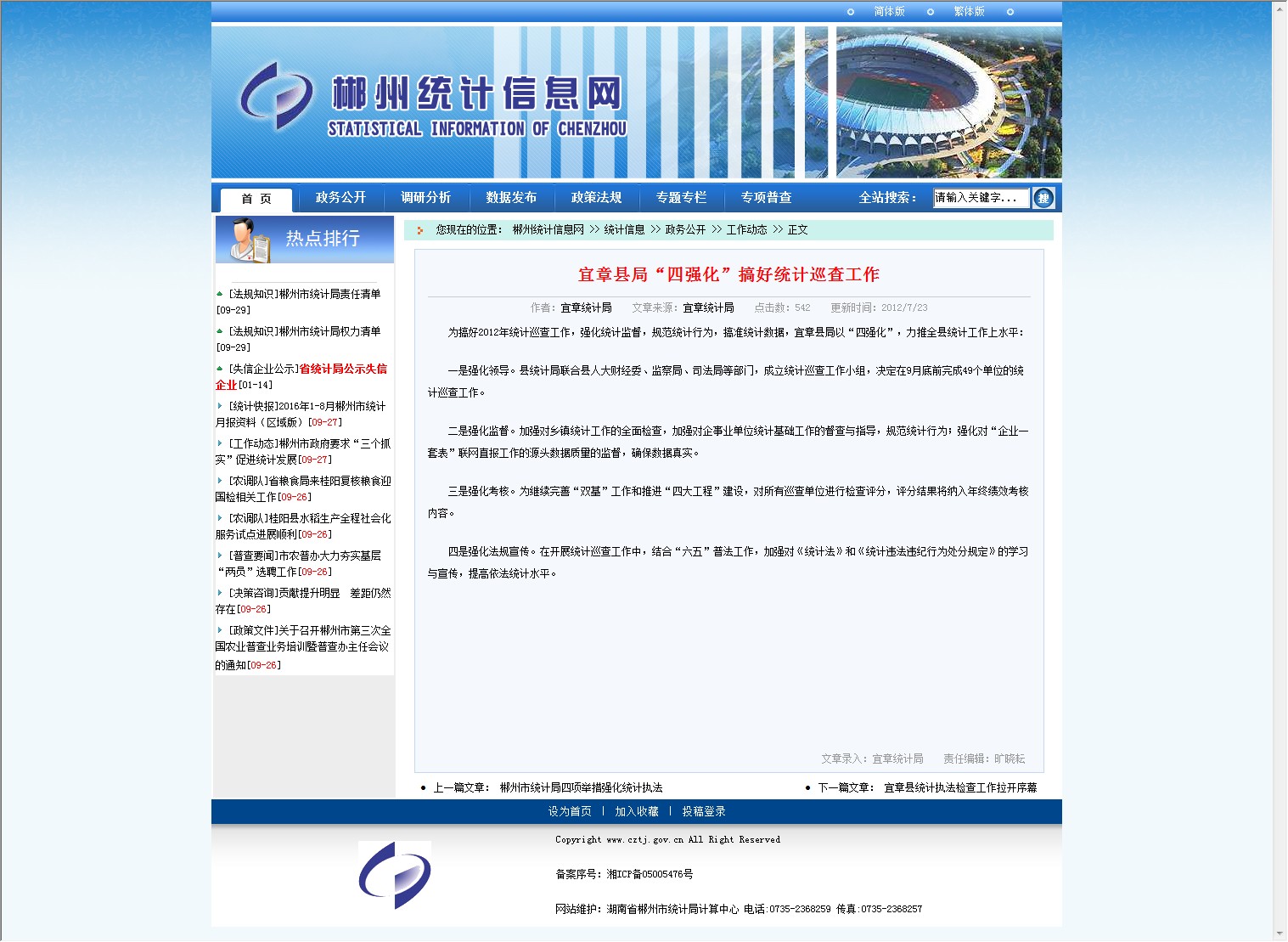 为搞好2012年统计巡查工作,强化统计监督,规范统计行为,搞准统计数据,宜章县局以“四强化”,力推全县统计工作上水平: