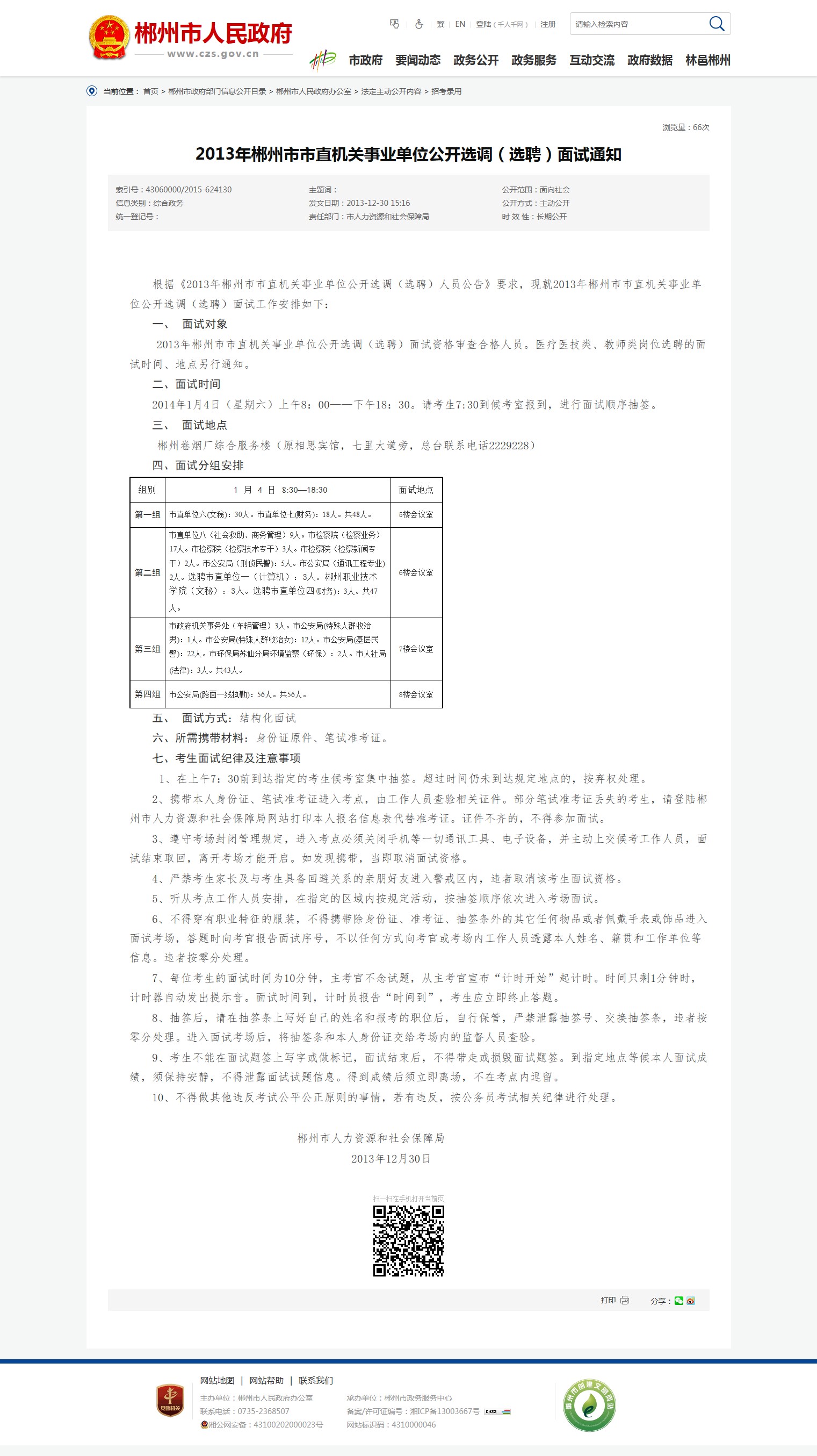 2013年郴州市市直机关事业单位公开选调(选聘)面试通知