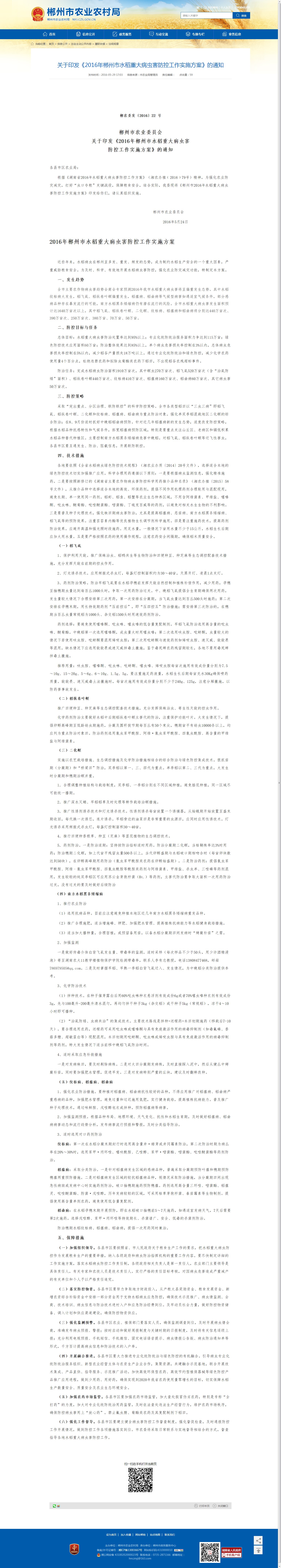 2016年郴州市水稻重大病虫害防控工作实施方案