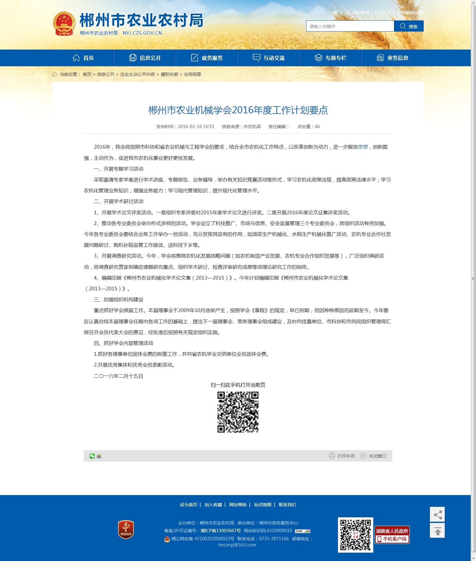 4、编辑印刷《郴州市农业机械化学术论文集(2013—2015)》。今年计划编辑印刷《郴州市农业机械化学术论文集(2013—2015)》。