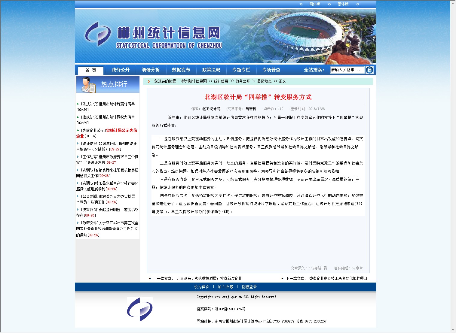 近年来,北湖区统计局根据当前统计信息需求多样性的特点,全局干部职工在高效率运作的前提下“四举措”实现服务方式转变: