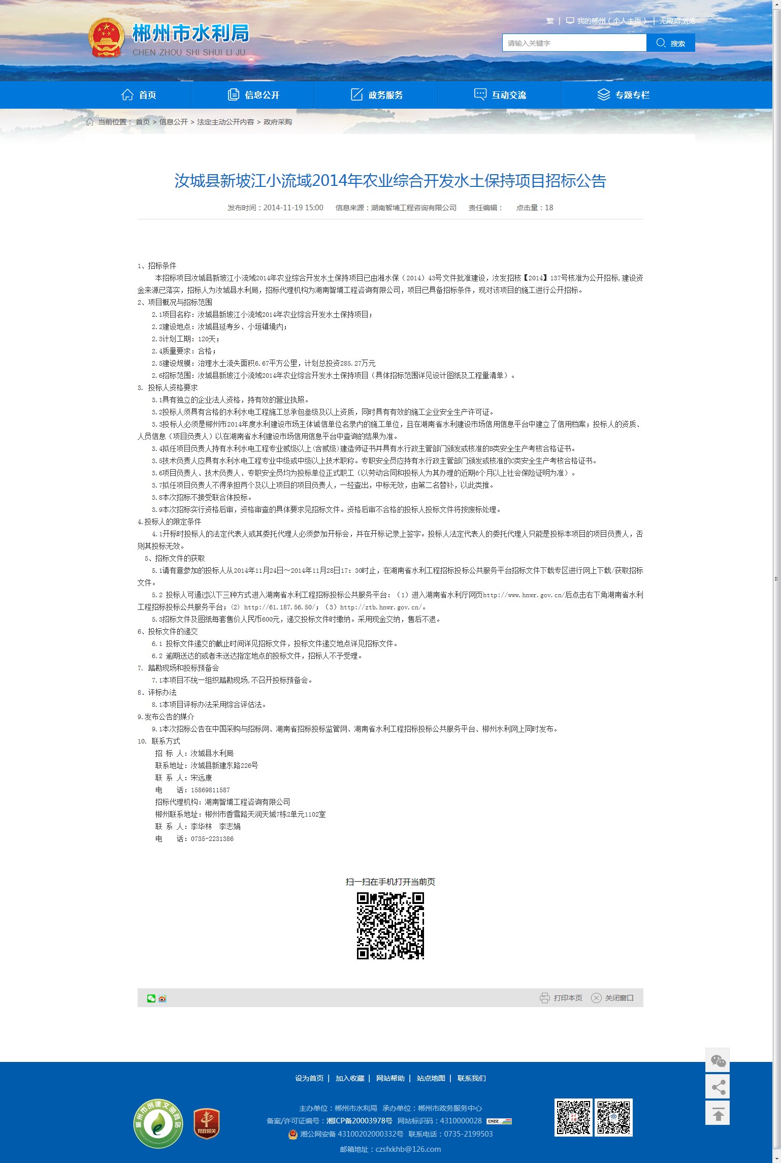 9.1本次招标公告在中国采购与招标网、湖南省招标投标监管网、湖南省水利工程招标投标公共服务平台、郴州水利网上同时发布。