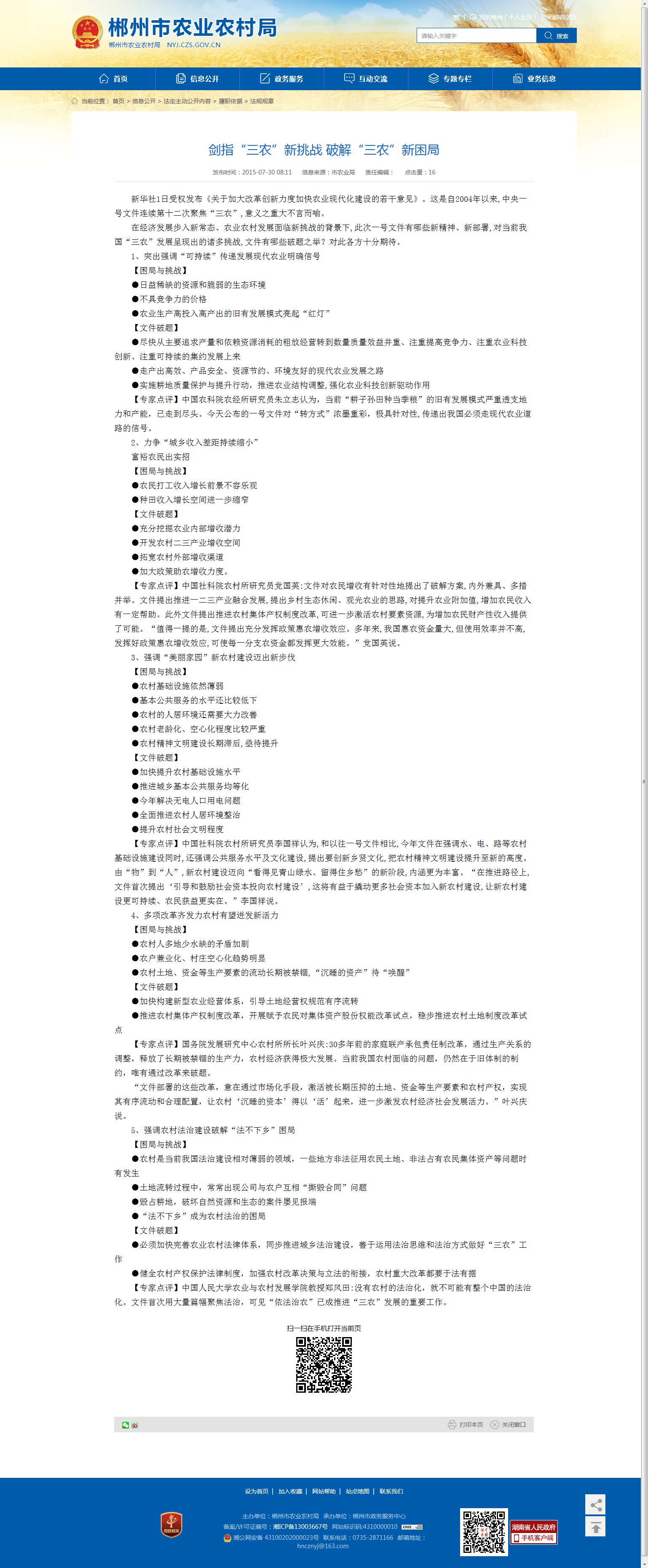 在经济发展步入新常态、农业农村发展面临新挑战的背景下,此次一号文件有哪些新精神、新部署,对当前我国“三农”发展呈现出的诸多挑战,文件有哪些破题之举?对此各方十分期待。