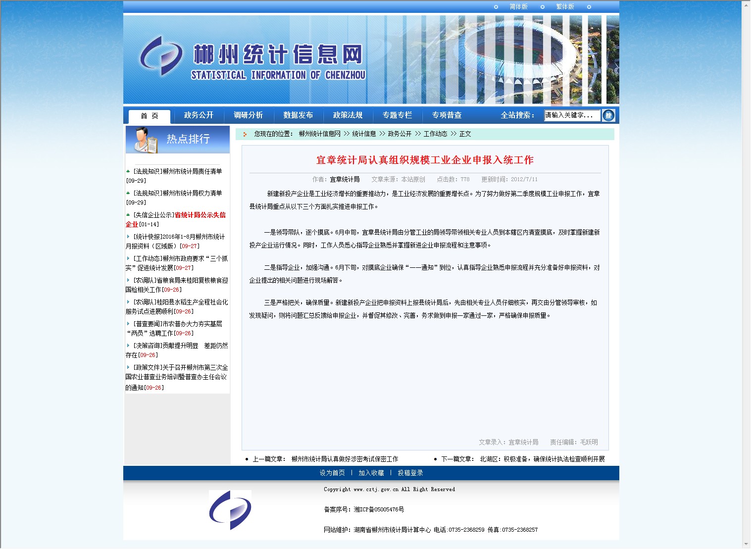 一是领导带队,逐个摸底。6月中旬,宜章县统计局由分管工业的局领导带领相关专业人员到本辖区内清查摸底,及时掌握新建新投产企业运行情况。同时,工作人员悉心指导企业熟悉并掌握新进企业申报流程和注意事项。