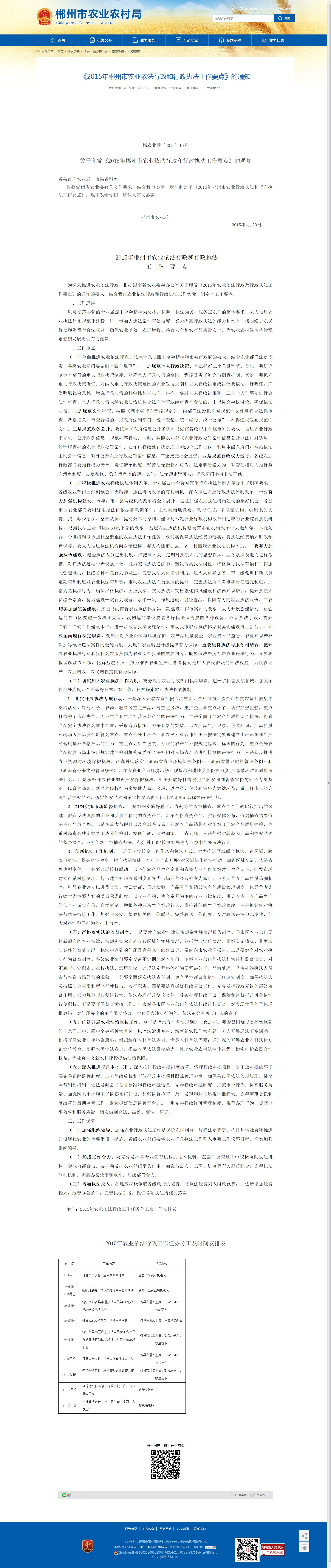 关于印发《2015年郴州市农业依法行政和行政执法工作要点》的通知