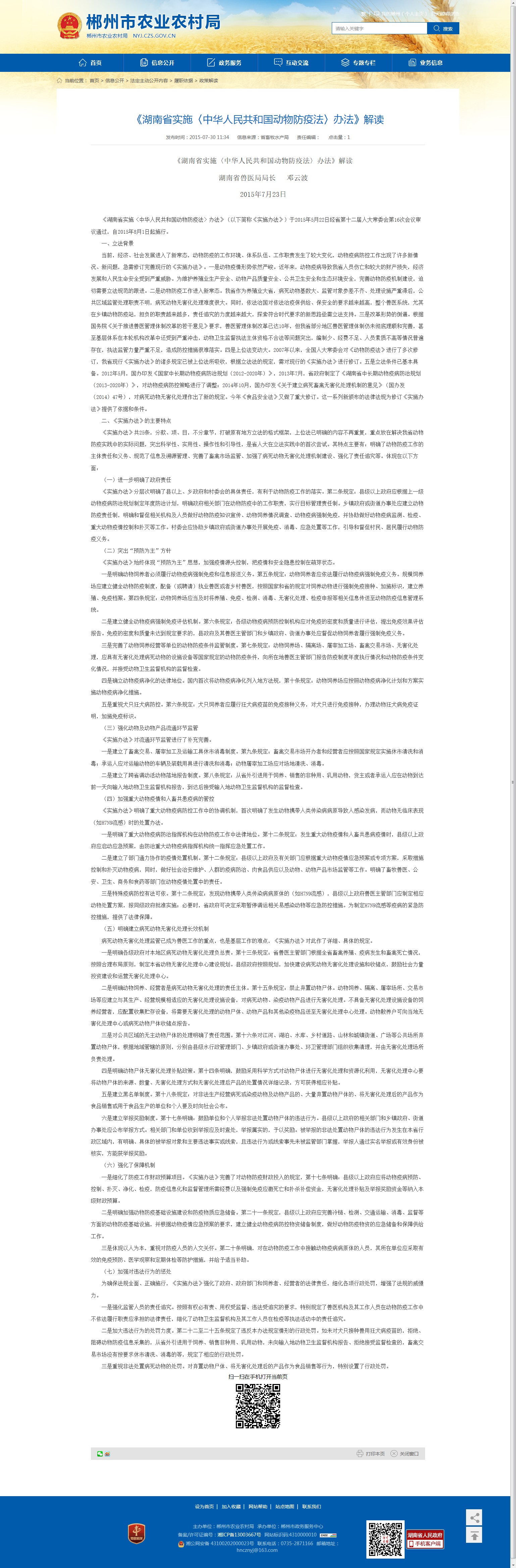 《湖南省实施〈中华人民共和国动物防疫法〉办法》解读