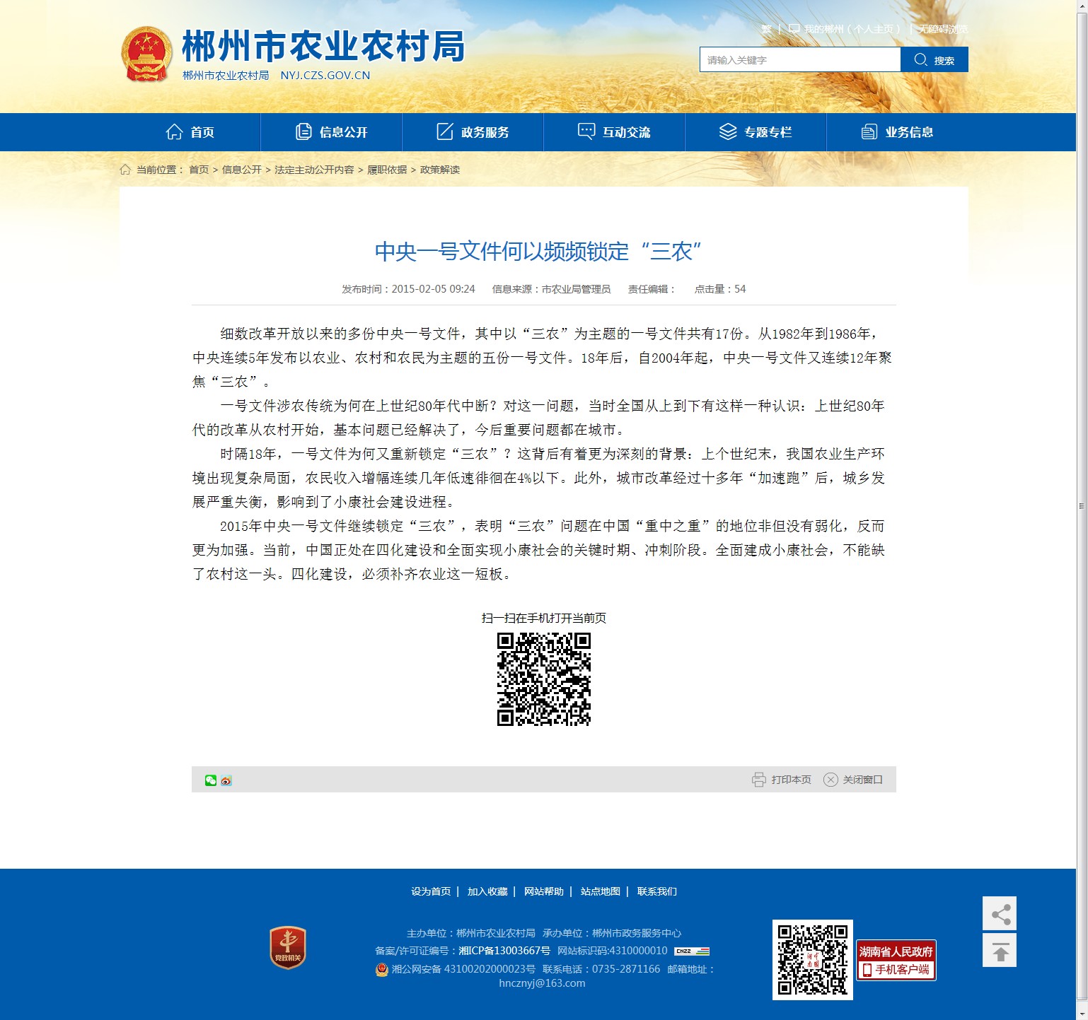 2015年中央一号文件继续锁定“三农”,表明“三农”问题在中国“重中之重”的地位非但没有弱化,反而更为加强。当前,中国正处在四化建设和全面实现小康社会的关键时期、冲刺阶段。全面建成小康社会,不能缺了农村这一头。四化建设,必须补齐农业这一短板。