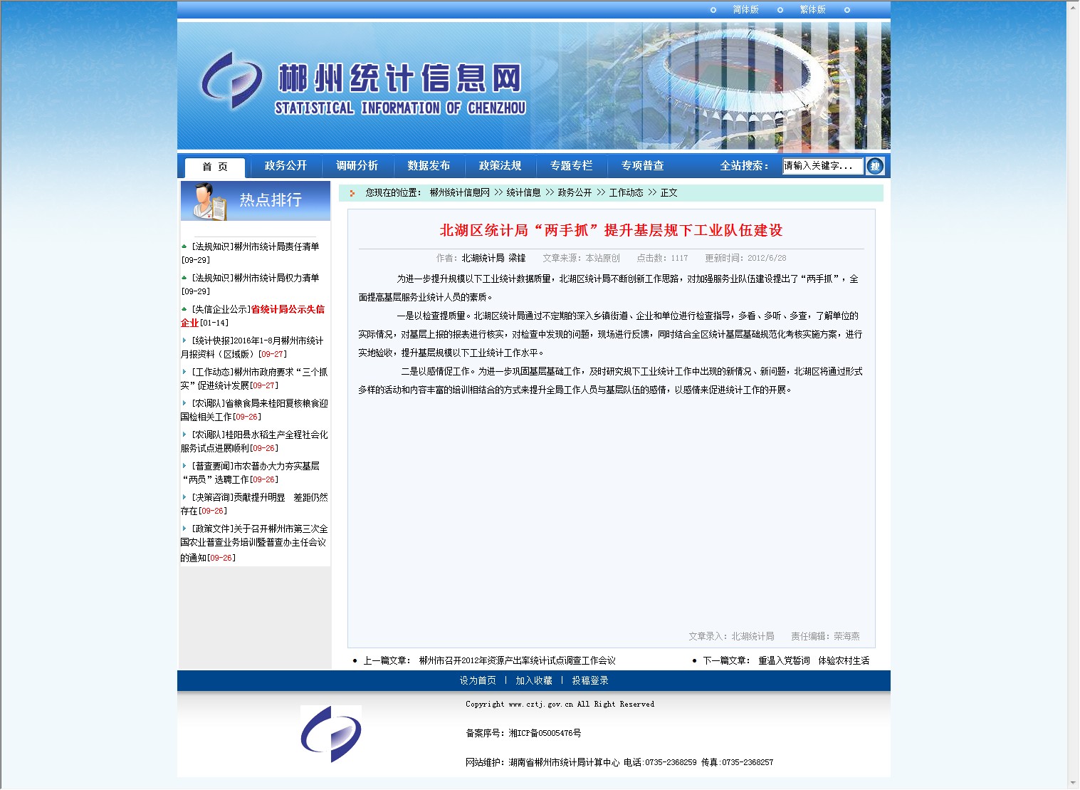 为进一步提升规模以下工业统计数据质量,北湖区统计局不断创新工作思路,对加强服务业队伍建设提出了“两手抓”,全面提高基层服务业统计人员的素质。