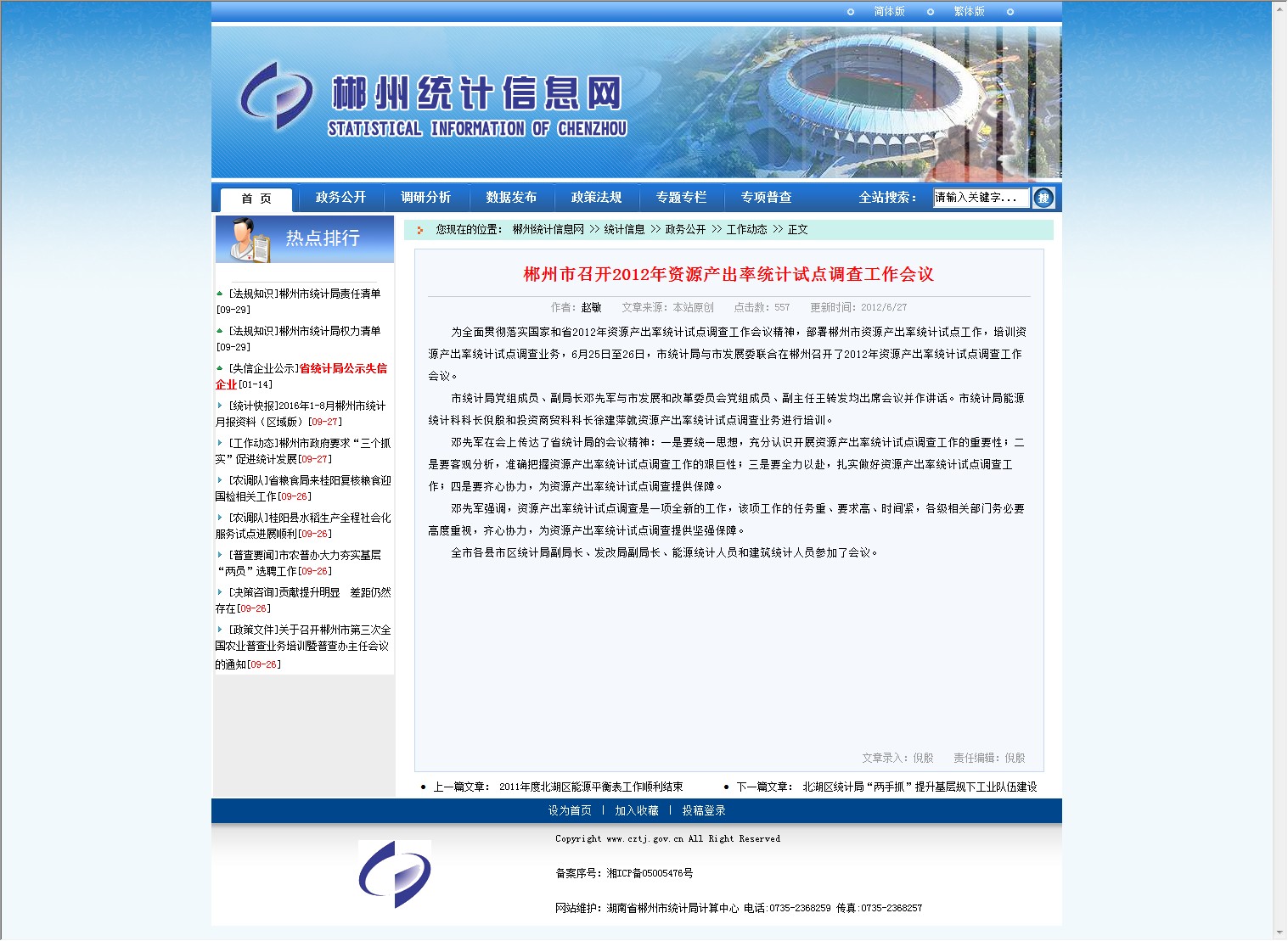 为全面贯彻落实国家和省2012年资源产出率统计试点调查工作会议精神,部署郴州市资源产出率统计试点工作,培训资源产出率统计试点调查业务,
