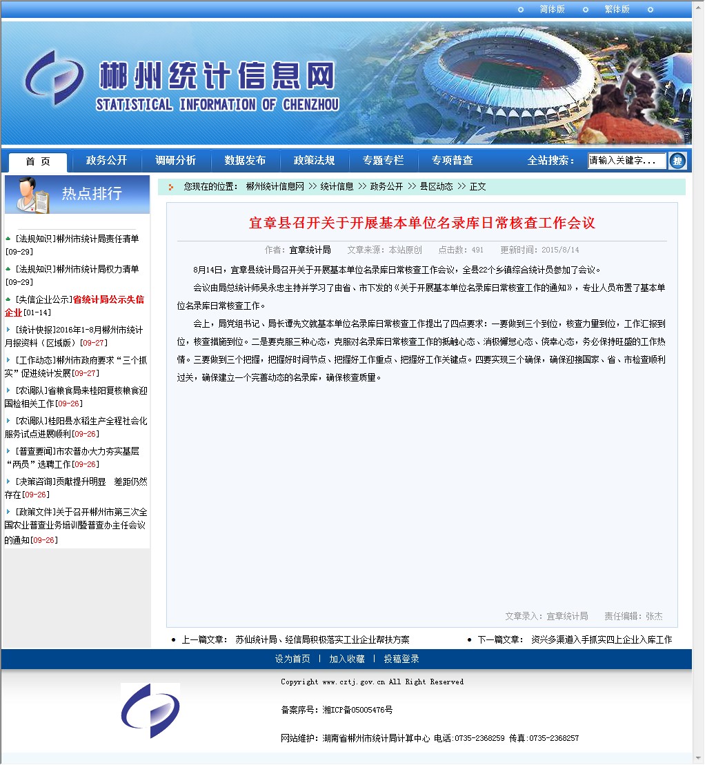 会议由局总统计师吴永忠主持并学习了由省、市下发的《关于开展基本单位名录库日常核查工作的通知》,专业人员布置了基本单位名录库日常核查工作。