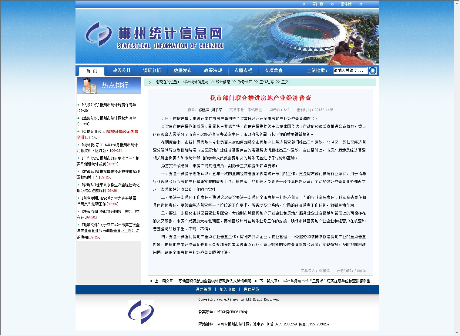 三、要进一步强化市城区普查业务配合。考虑到市城区房地产开发企业和房地产服务业企业在区域和管理上的可能存在的交叉现象,市房产局要加大与北湖区、苏仙区统计局在具体业务工作的对接,确保市城区房地产业企业和经营户在核查和普查登记阶段不重、不漏、不错。