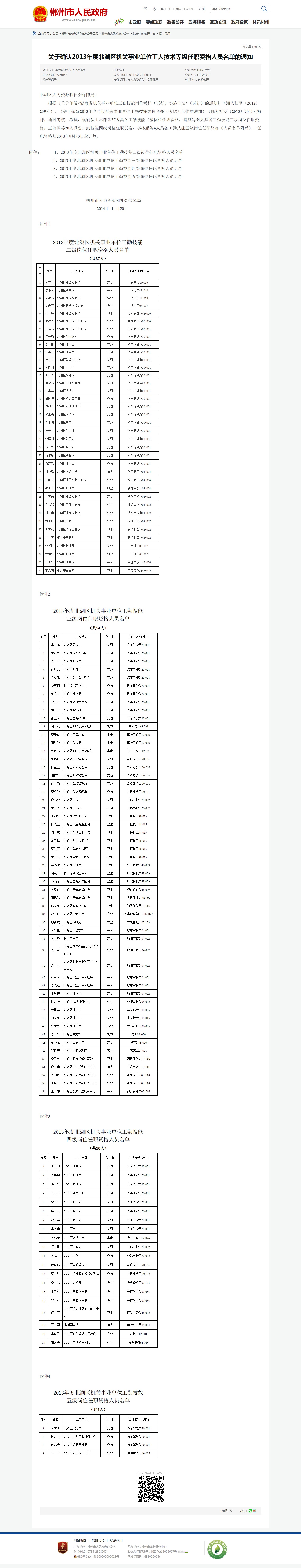 2013年度北湖区机关事业单位工勤技能 四级岗位任职资格人员名单 |