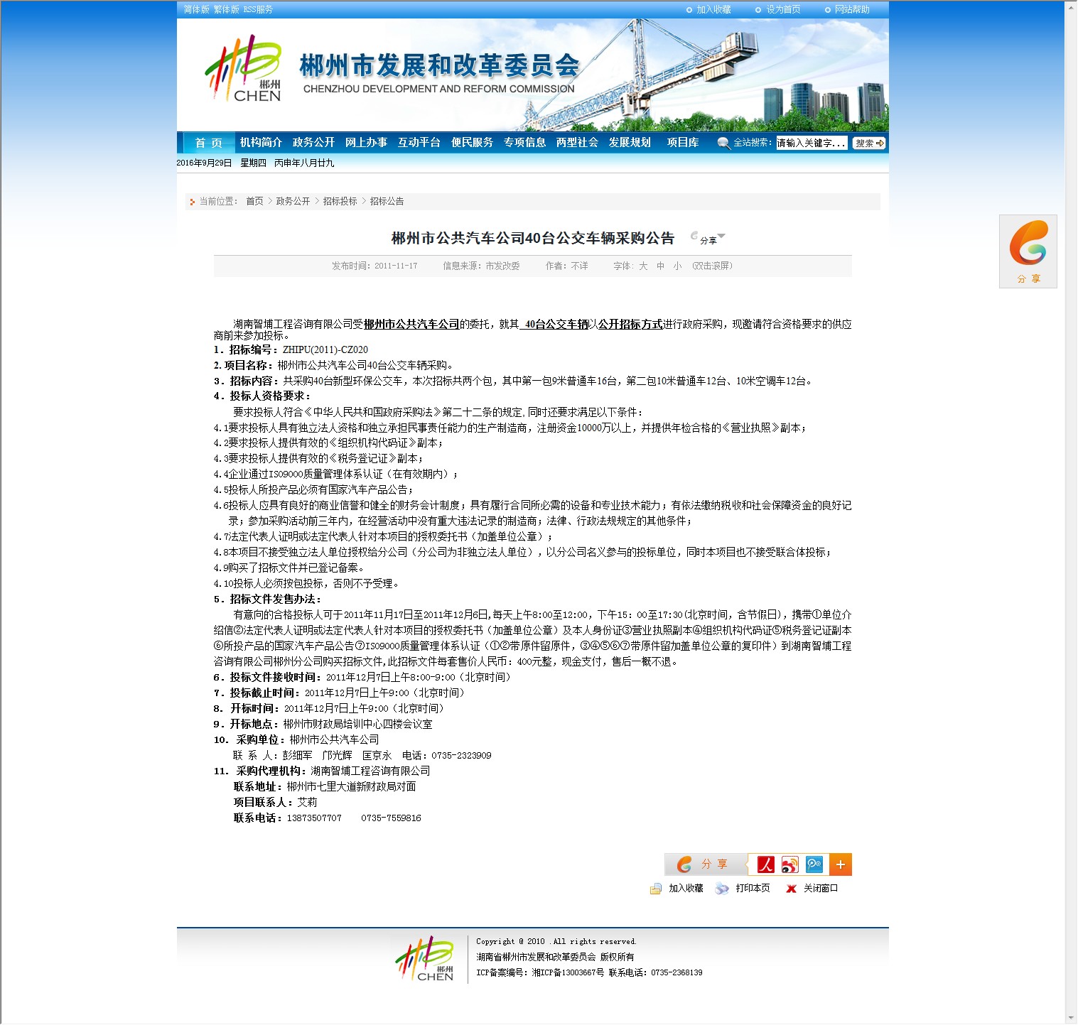 10. 采购单位:郴州市公共汽车公司