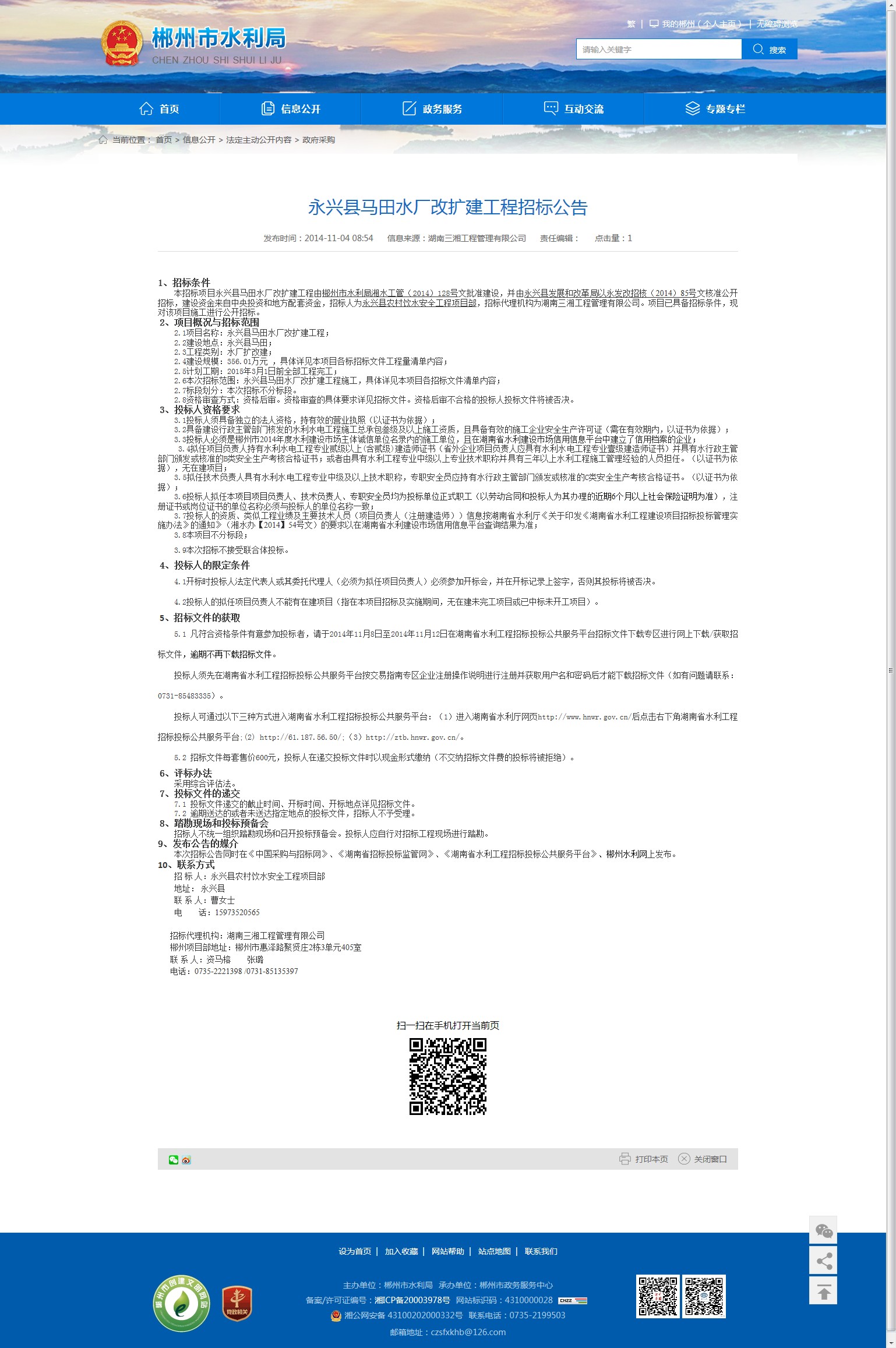 本次招标公告同时在《中国采购与招标网》、《湖南省招标投标监管网》、《湖南省水利工程招标投标公共服务平台》、郴州水利网上发布。