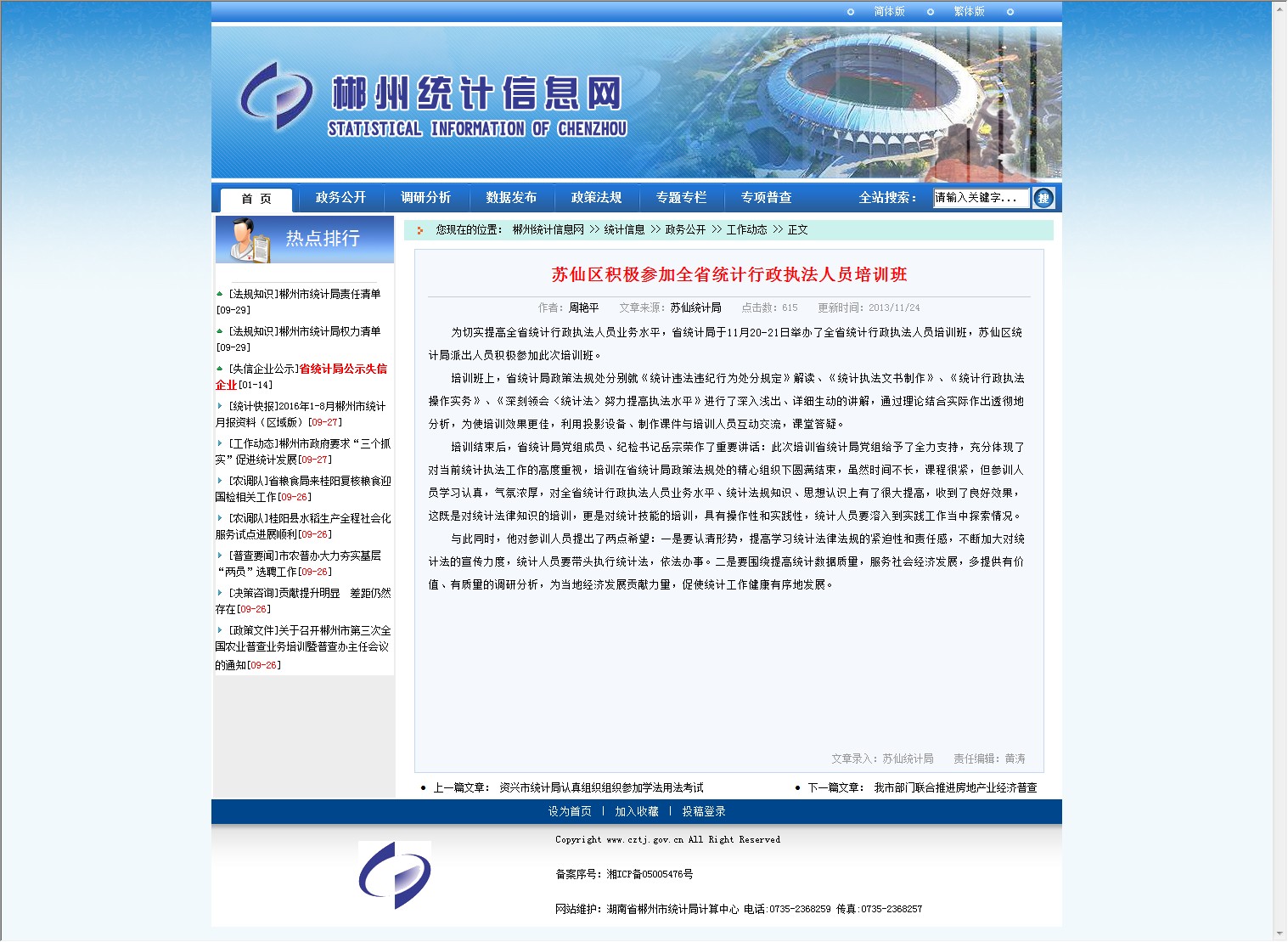 为切实提高全省统计行政执法人员业务水平,省统计局于11月20-21日举办了全省统计行政执法人员培训班,苏仙区统计局派出人员积极参加此次培训班。