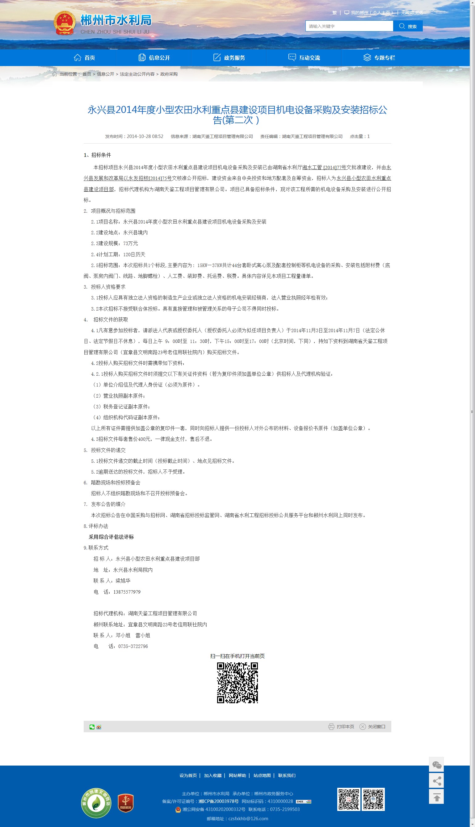 2.1项目名称:永兴县2014年度小型农田水利重点县建设项目机电设备采购及安装