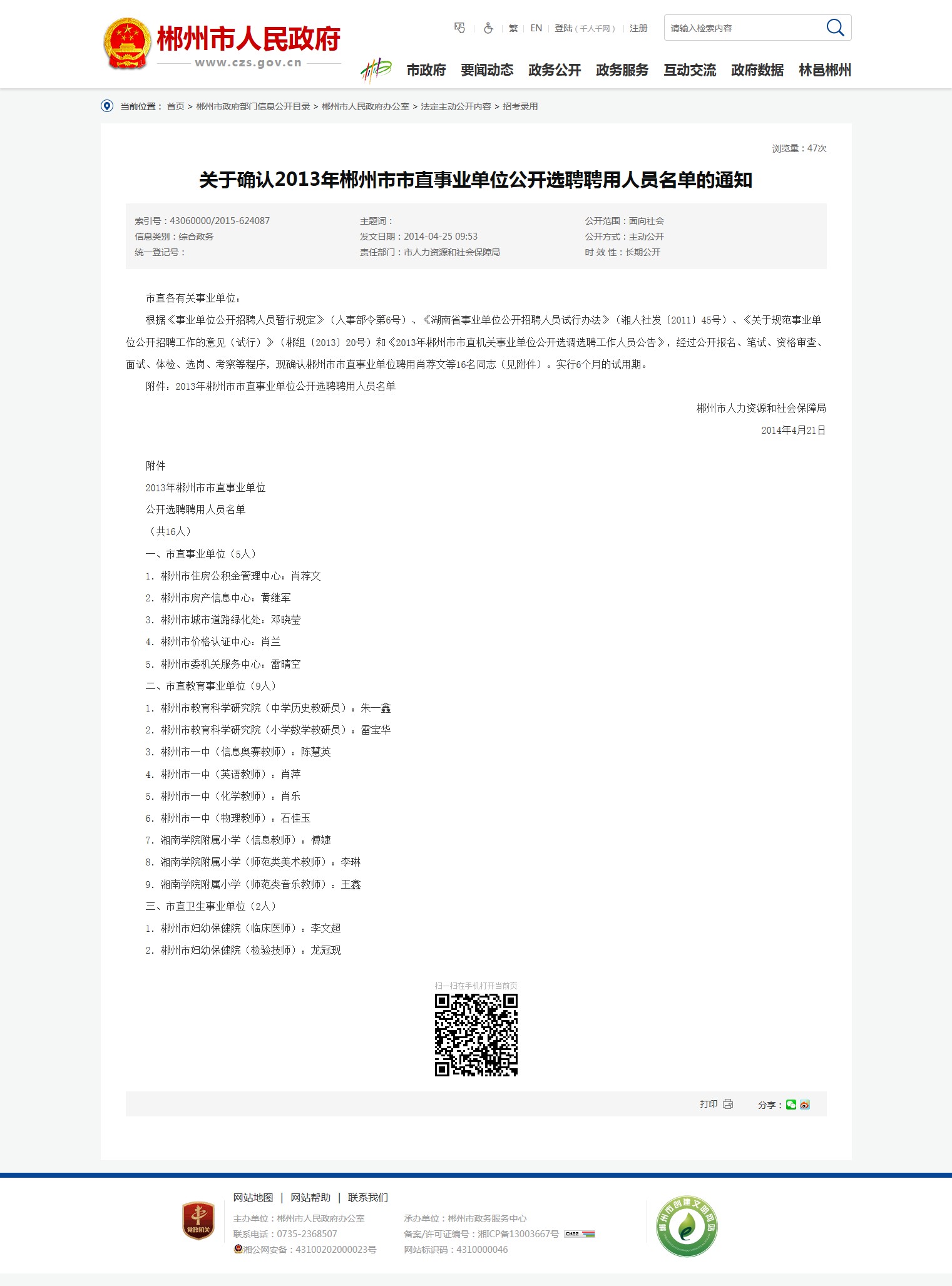 附件:2013年郴州市市直事业单位公开选聘聘用人员名单