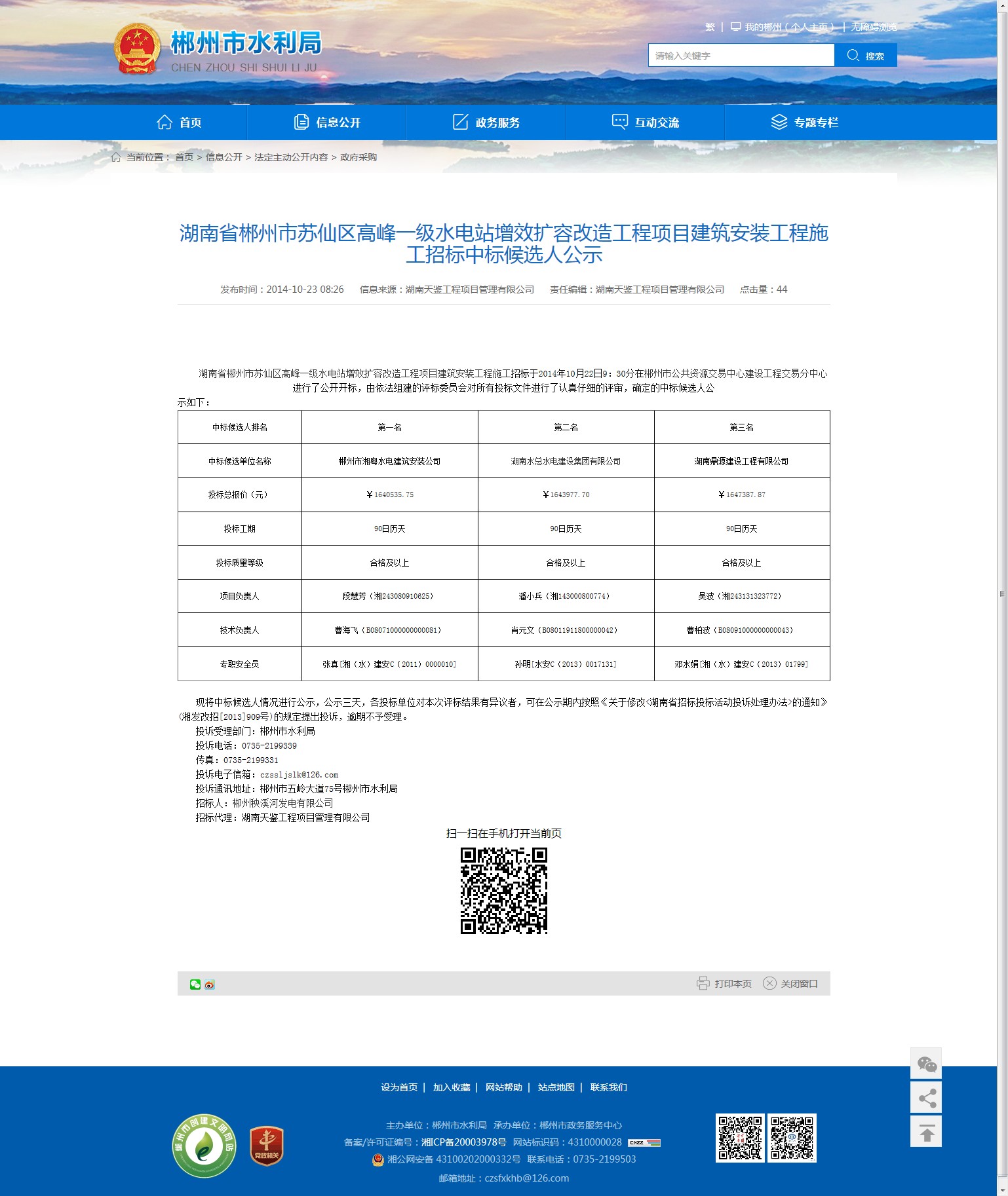 投诉通讯地址:郴州市五岭大道75号郴州市水利局