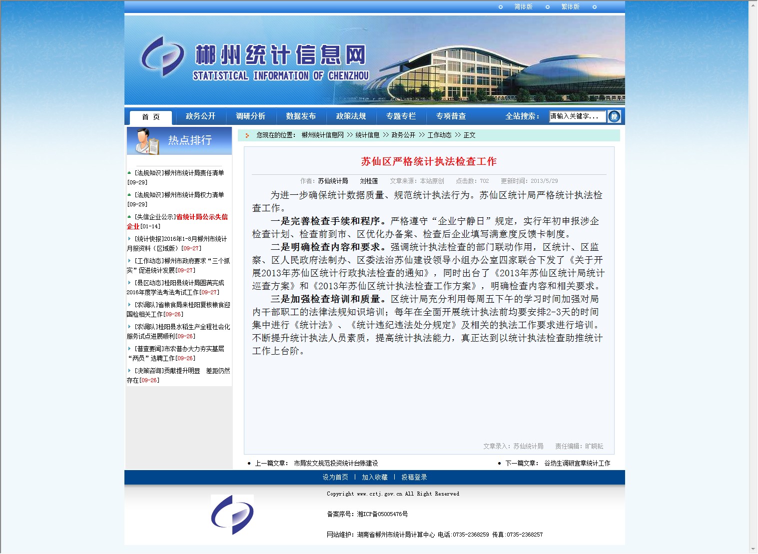 为进一步确保统计数据质量、规范统计执法行为。苏仙区统计局严格统计执法检查工作。