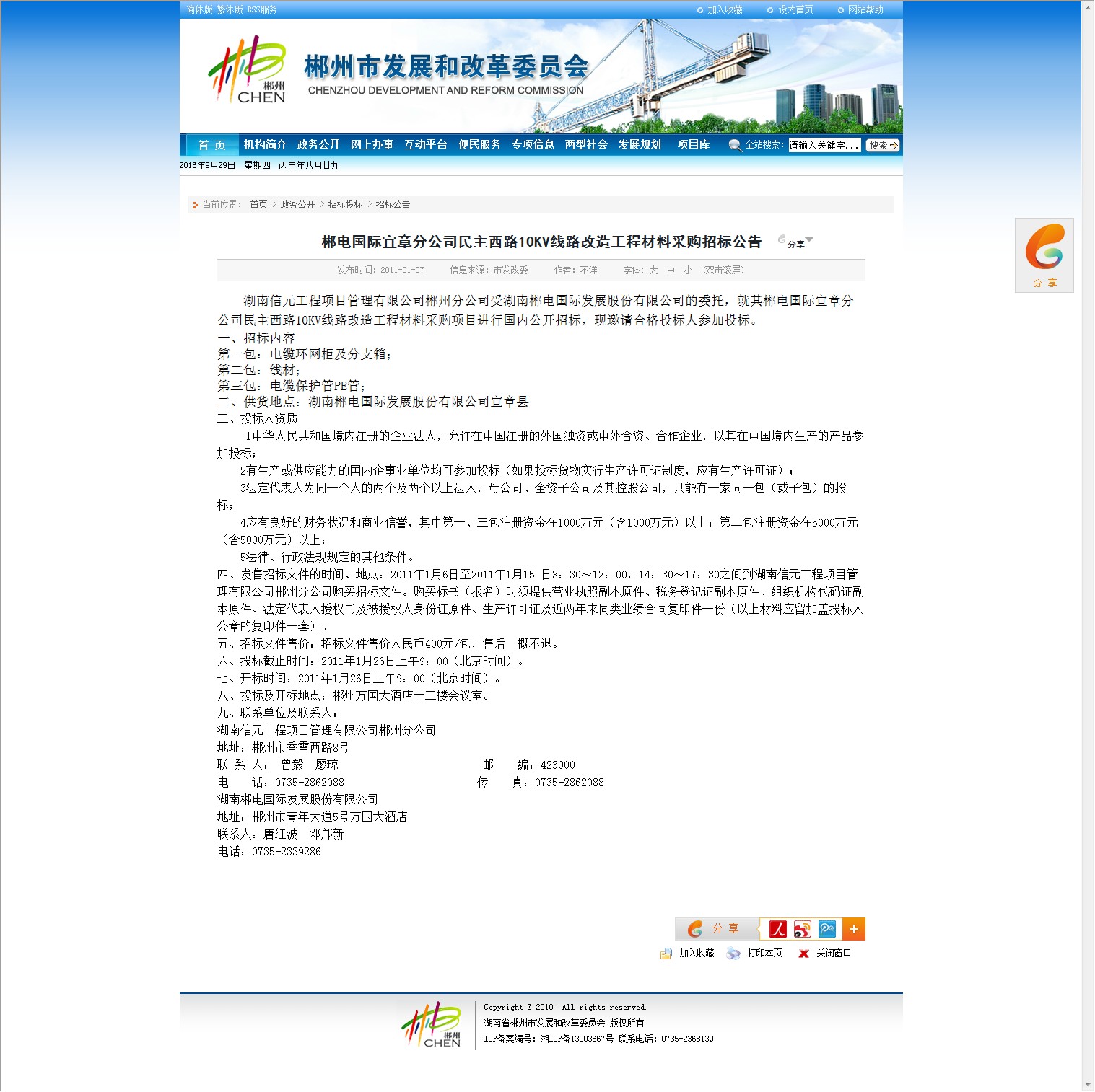 二、供货地点:湖南郴电国际发展股份有限公司宜章县