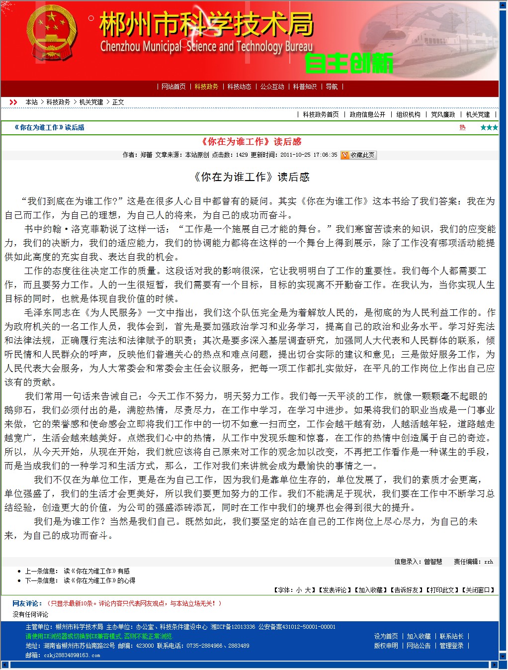 我们不仅在为单位工作,更是在为自己工作,因为我们是靠单位生存的,单位发展了,我们的素质才会更高,单位强盛了,我们的生活才会更美好,所以我们要更加努力的工作。我们不能满足于现状,我们要在工作中不断学习总结经验,创造更大的价值,为公司的强盛添砖添瓦,同时在工作中我们的境界也会得到很大的提升。