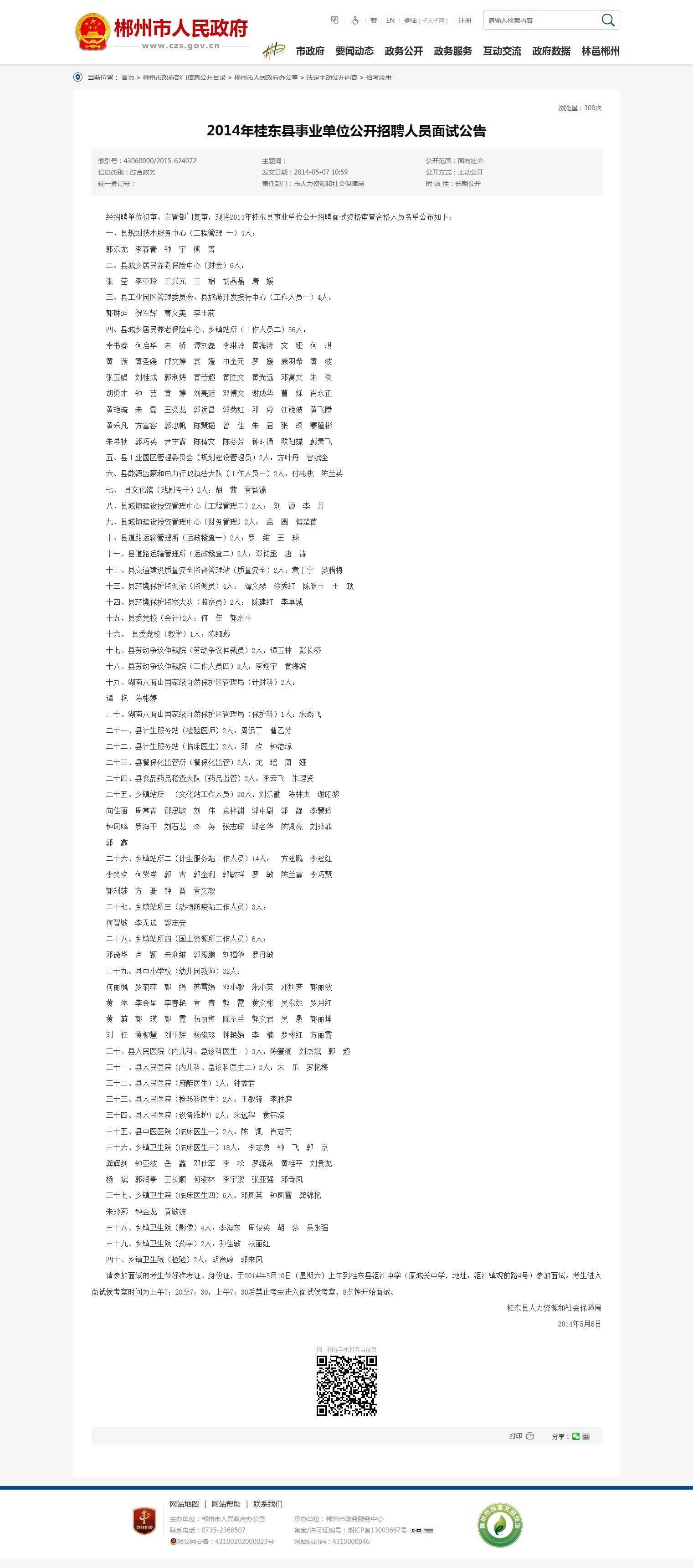 经招聘单位初审、主管部门复审,现将2014年桂东县事业单位公开招聘面试资格审查合格人员名单公布如下: