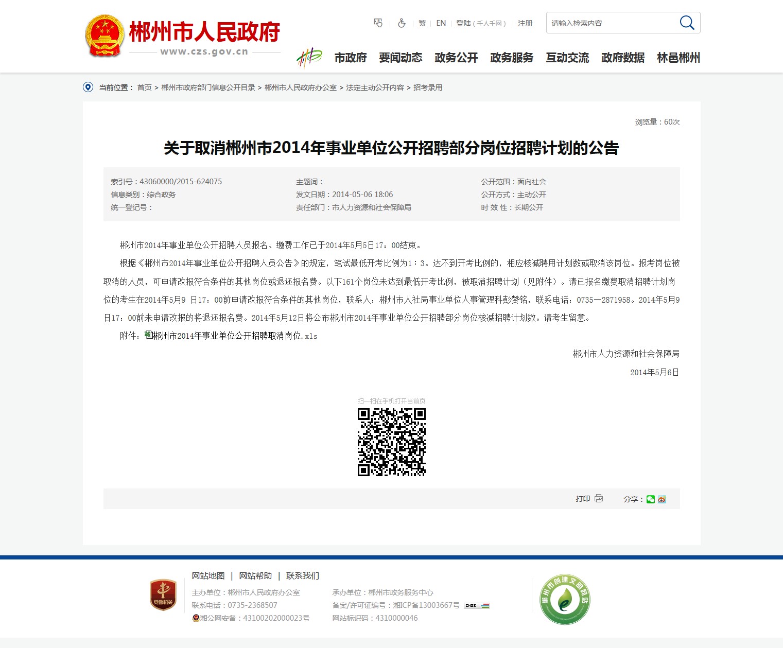 郴州市人力资源和社会保障局
