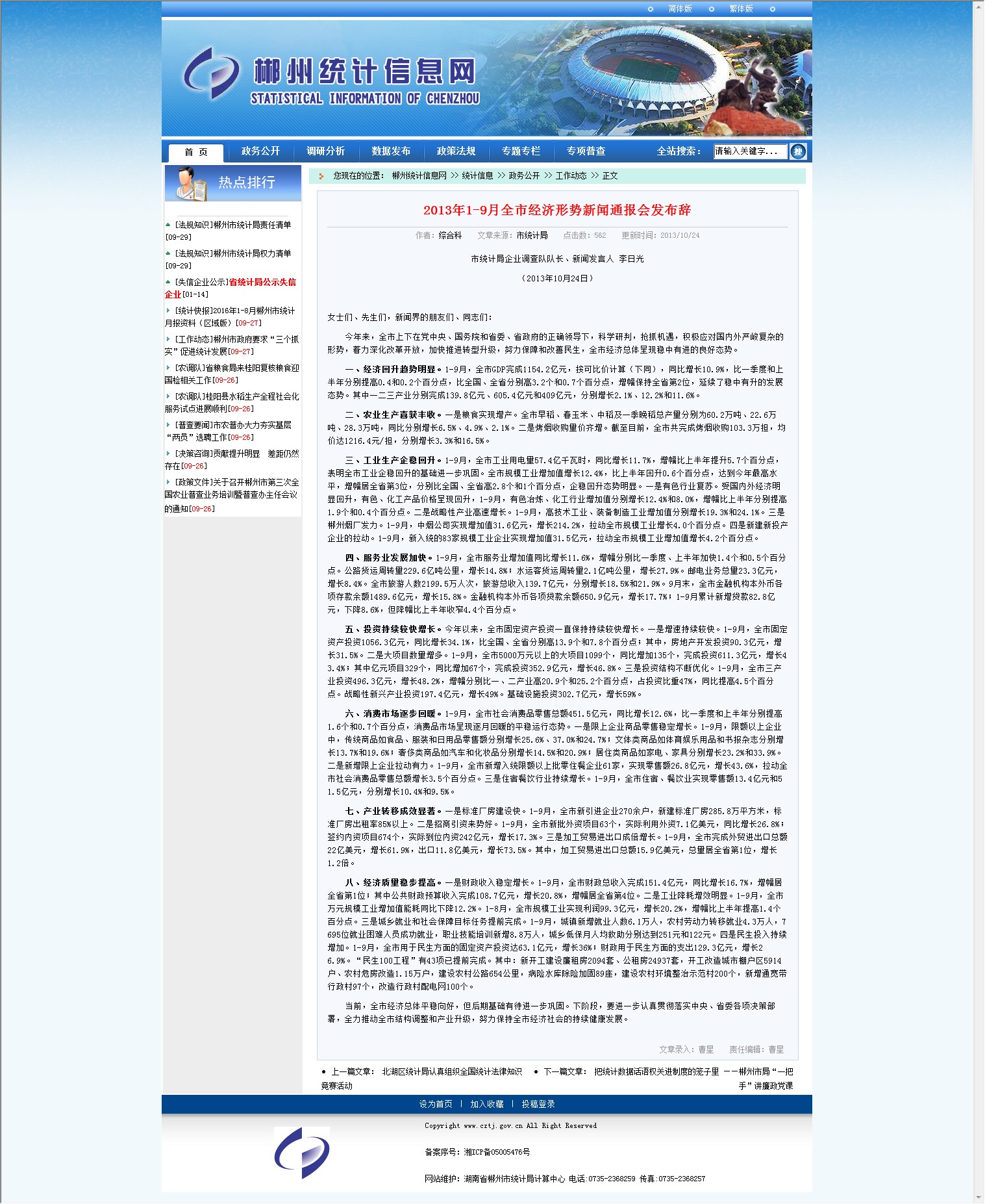 三、工业生产企稳回升。1-9月,全市工业用电量57.4亿千瓦时,同比增长11.7%,增幅比上半年提升5.7个百分点,表明全市工业企稳回升的基础进一步巩固。全市规模工业增加值增长12.4%,比上半年回升0.6个百分点,达到今年最高水平,增幅居全省第3位,分别比全国、全省高2.8个和1个百分点,企稳回升态势明显。一是有色行业复苏。受国内外经济明显回升,有色、化工产品价格呈现回升,1-9月,有色冶炼、化工行业增加值分别增长12.4%和8.0%,增幅比上半年分别提高1.9个和0.4个百分点。二是战略性产业高速增长。1-9月,高技术工业、装备制造工业增加值分别增长19.3%和24.1%。三是郴州烟厂发力。1-9月,中烟公司实现增加值31.6亿元,增长214.2%,拉动全市规模工业增长4.0个百分点。四是新建新投产企业的拉动。1-9月,新入统的83家规模工业企业实现增加值31.5亿元,拉动全市规模工业增加值增长4.2个百分点。