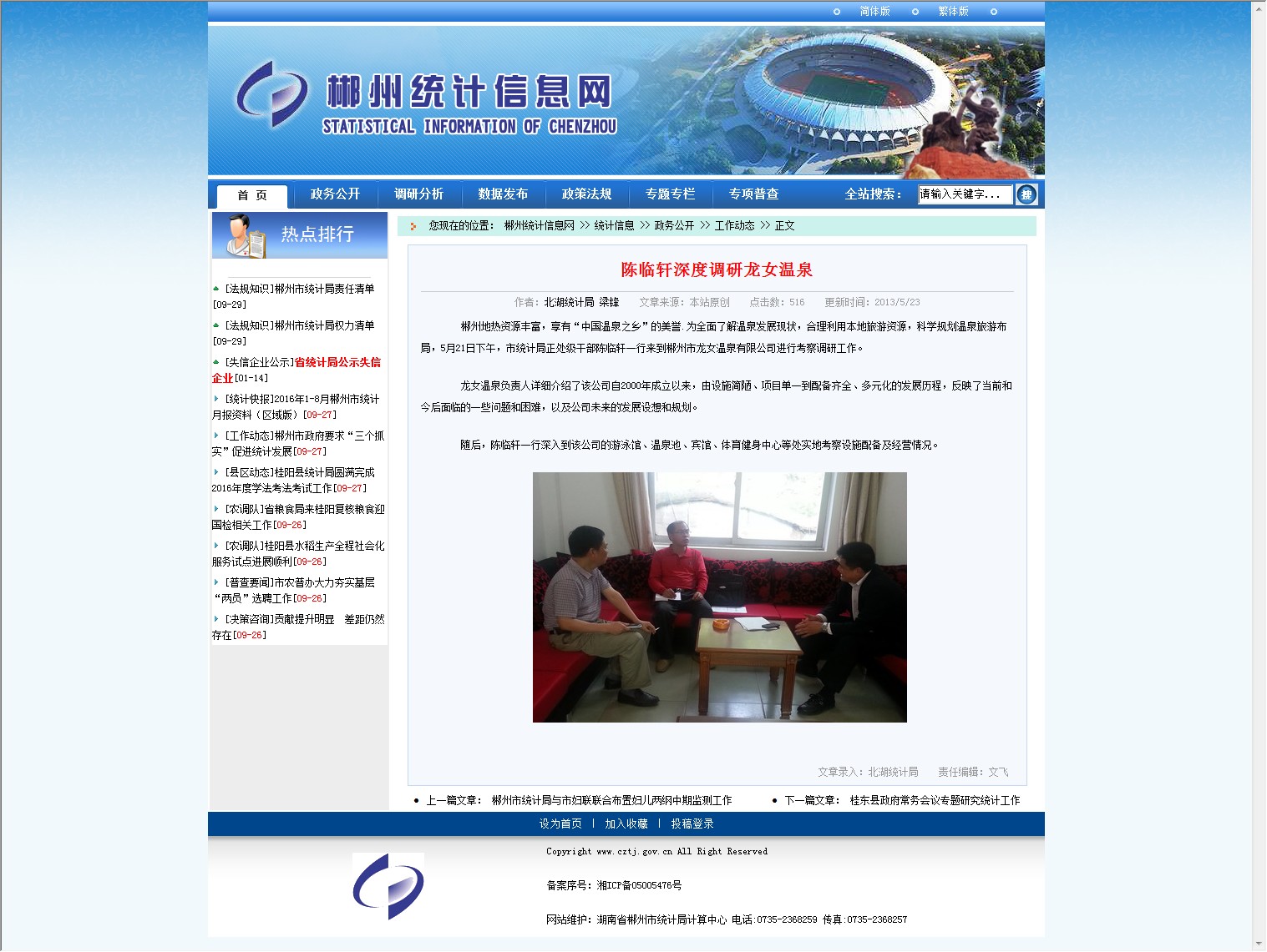 郴州地热资源丰富,享有“中国温泉之乡”的美誉.为全面了解温泉发展现状,合理利用本地旅游资源,科学规划温泉旅游布局,5月21日下午,市统计局正处级干部陈临轩一行来到郴州市龙女温泉有限公司进行考察调研工作。