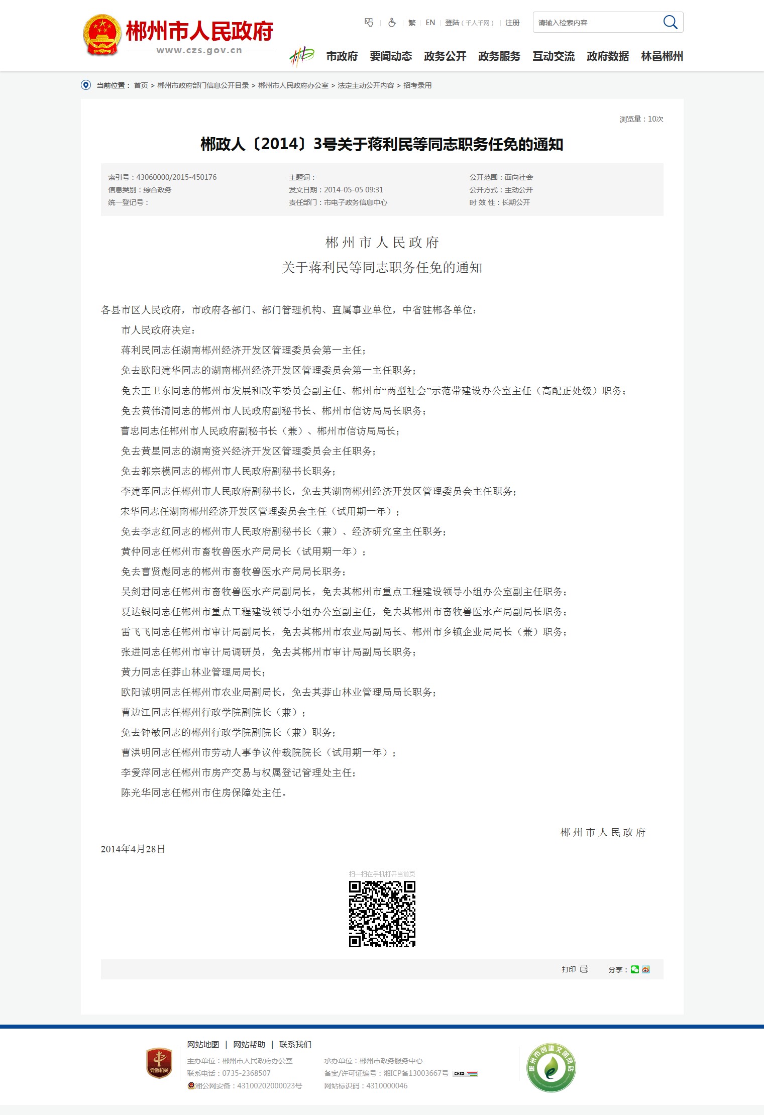郴 州 市 人 民 政 府