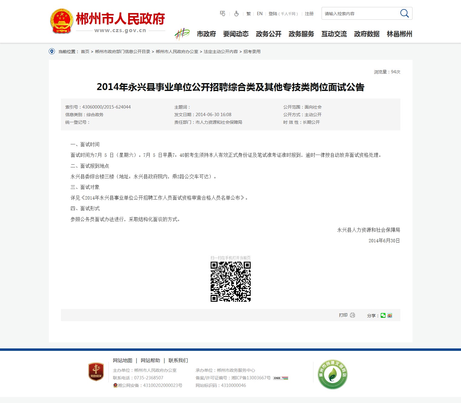 发布机构:永兴县人力资源和社会保障局