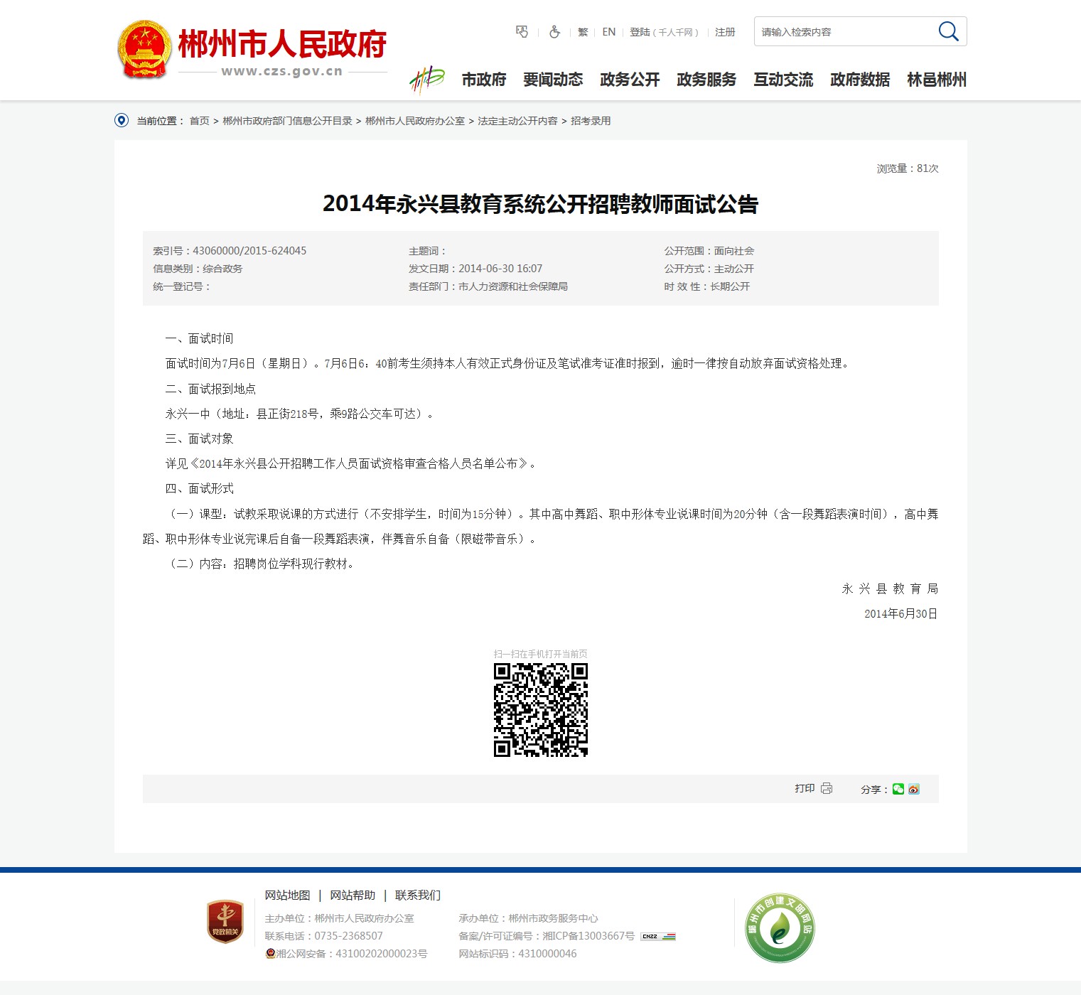 详见《2014年永兴县公开招聘工作人员面试资格审查合格人员名单公布》。