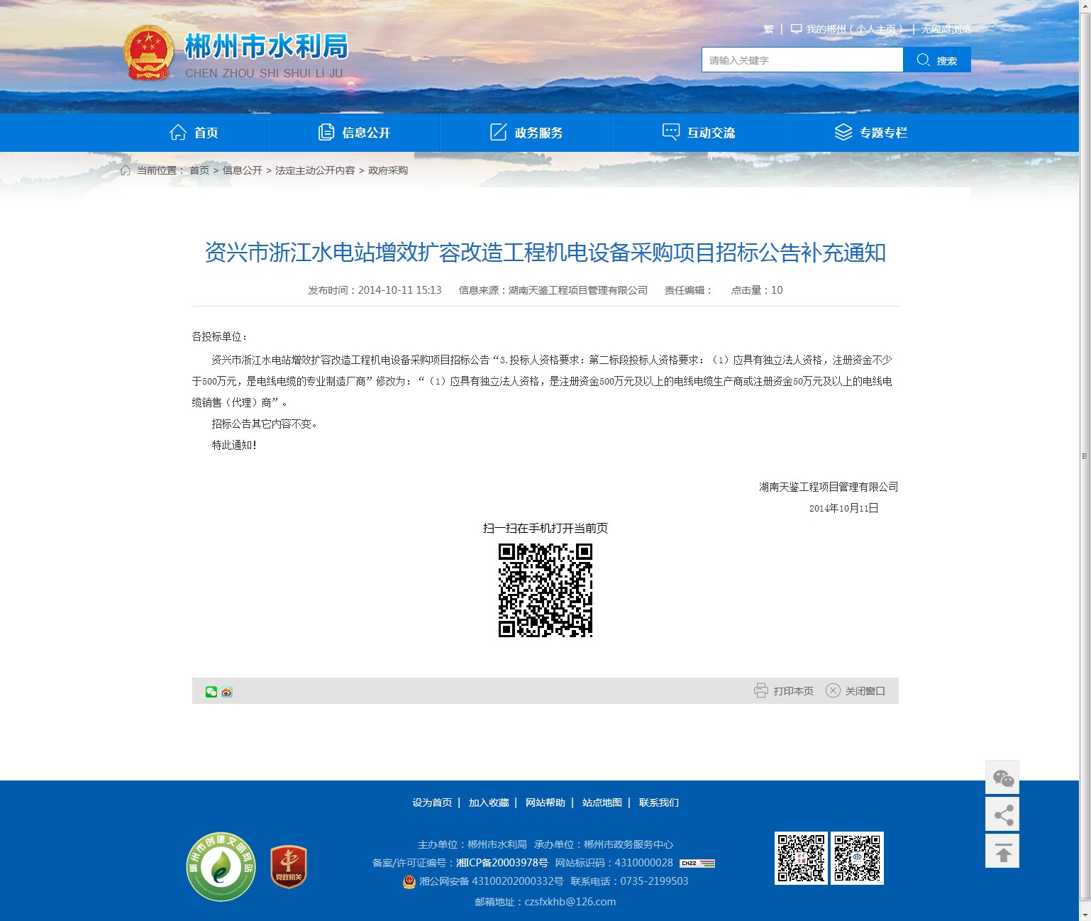 发文机构:郴州市水利局