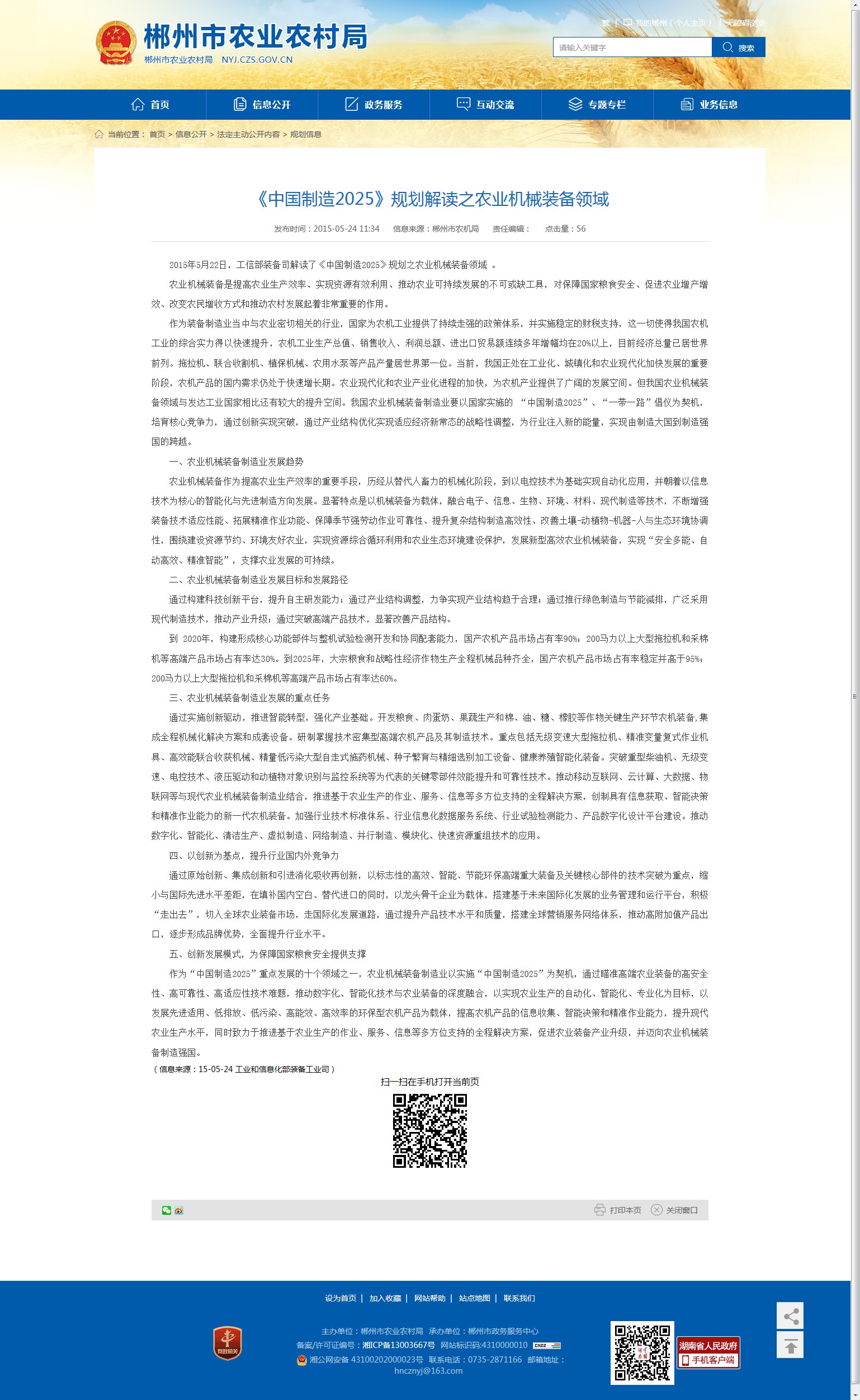 2015年5月22日,工信部装备司解读了《中国制造2025》规划之农业机械装备领域 。