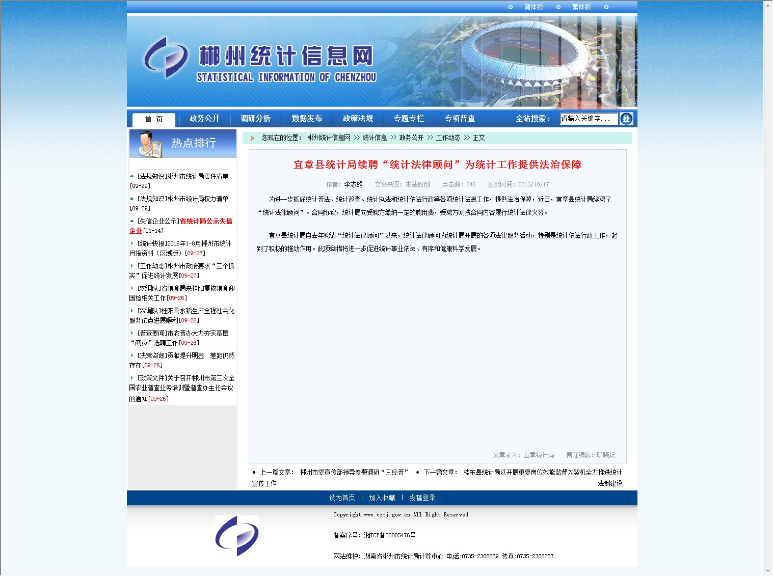 发文机构:郴州市统计局