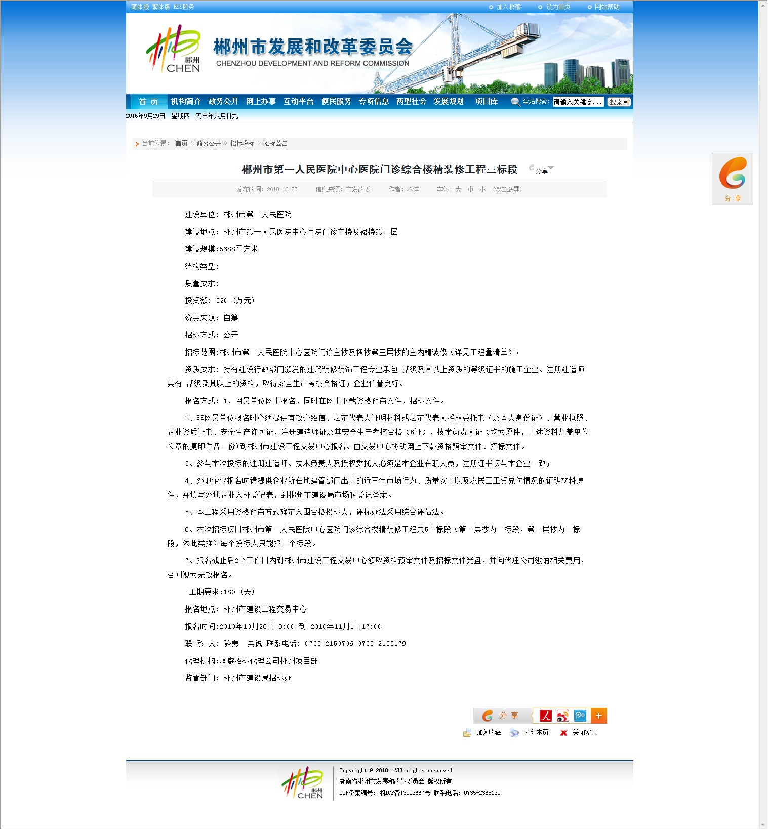 监管部门: 郴州市建设局招标办