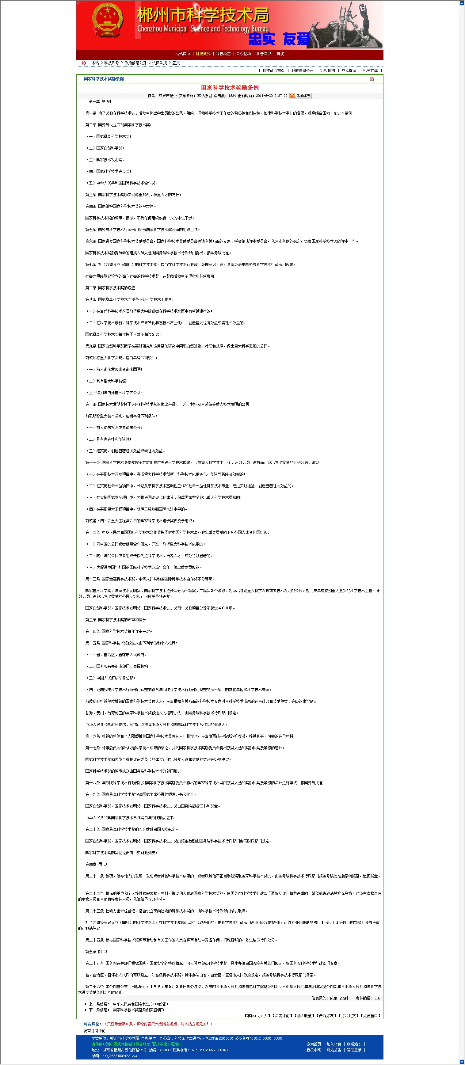 第五条 国务院科学技术行政部门负责国家科学技术奖评审的组织工作。