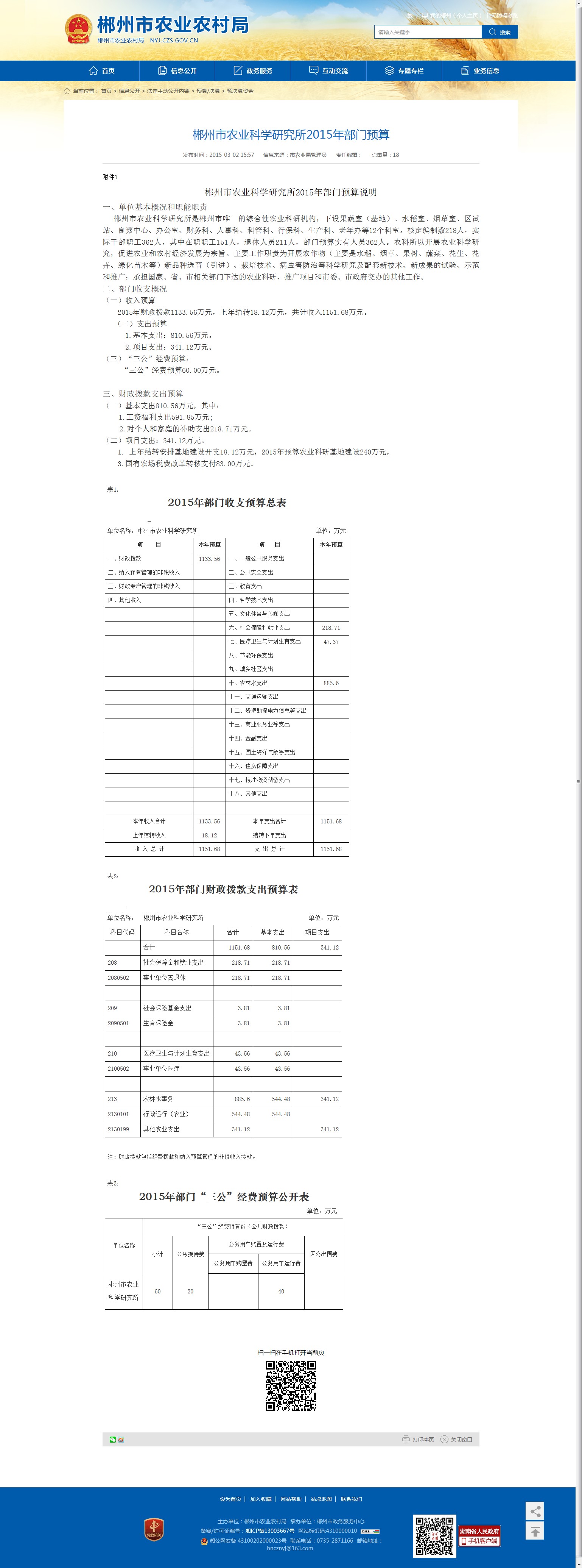 郴州市农业科学研究所2015年部门预算说明
