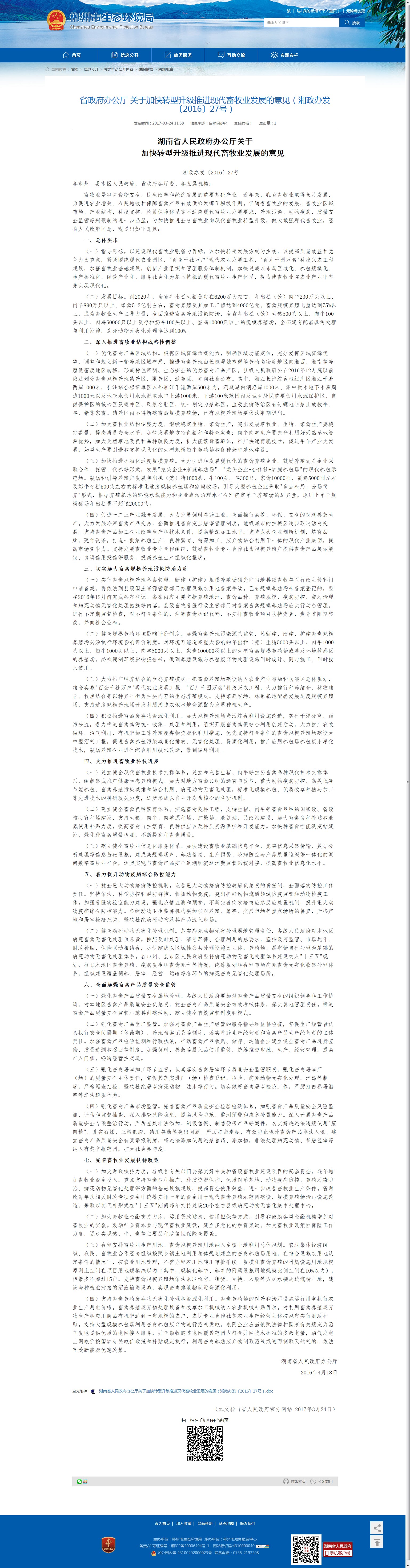 湖南省人民政府办公厅关于加快转型升级推进现代畜牧业发展的意见(湘政办发〔2016〕27号).doc