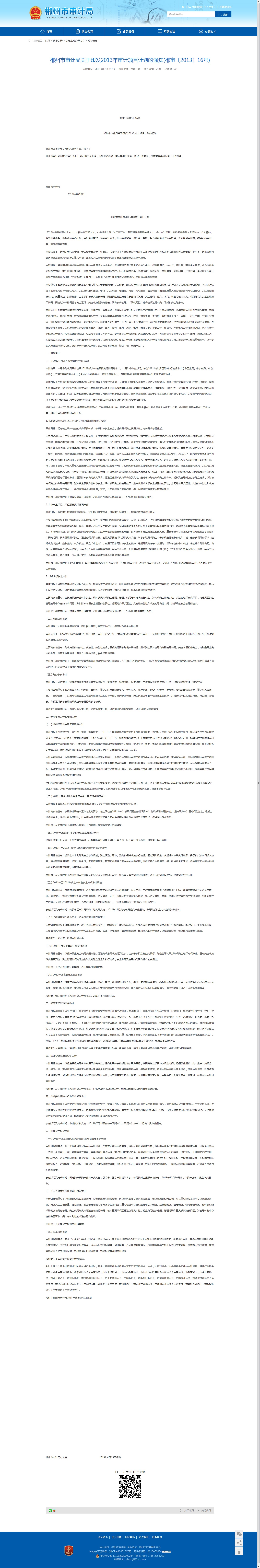 郴州市审计局关于印发2013年审计项目计划的通知
