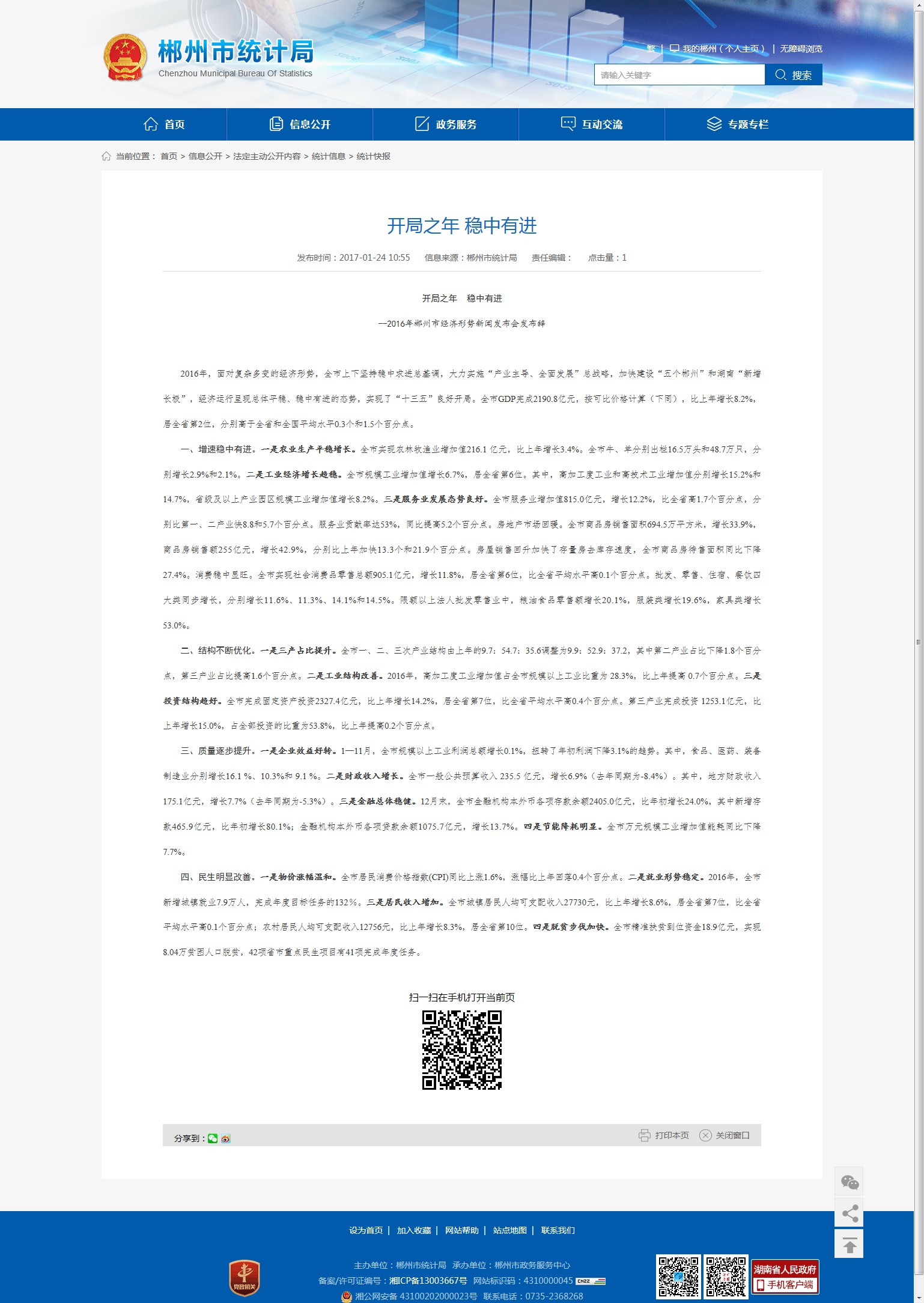 2016年,面对复杂多变的经济形势,全市上下坚持稳中求进总基调,大力实施“产业主导、全面发展”总战略,加快建设“五个郴州”和湖南“新增长极”,经济运行呈现总体平稳、稳中有进的态势,实现了“十三五”良好开局。全市GDP完成2190.8亿元,按可比价格计算(下同),比上年增长8.2%,居全省第2位,分别高于全省和全国平均水平0.3个和1.5个百分点。
