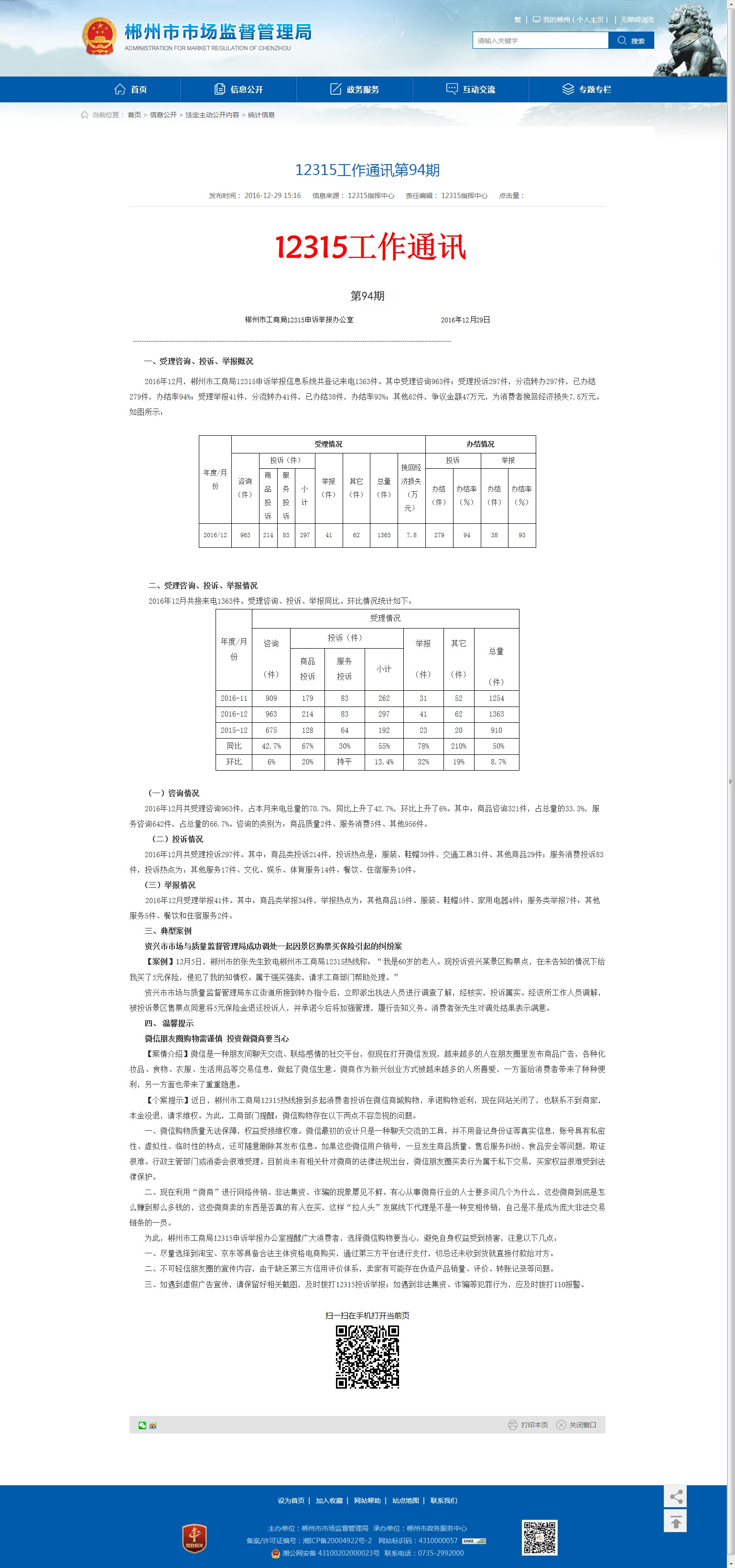 郴州市工商局12315申诉举报办公室 2016年12月29日