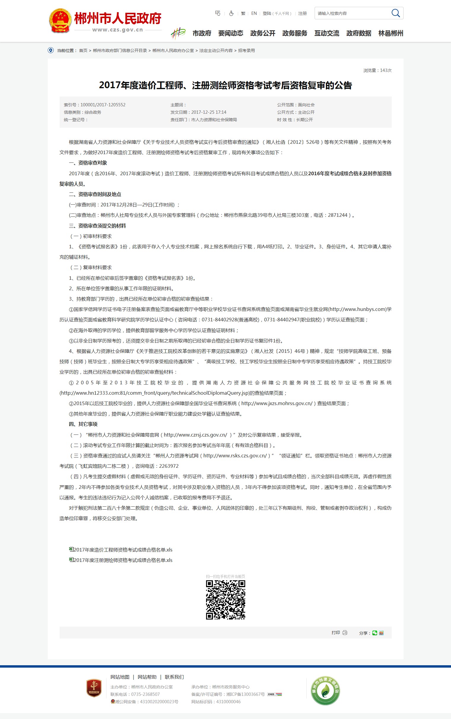 (一)“郴州市人力资源和社会保障局官网(http://www.czrsj.czs.gov.cn/ )”及时公示复审结果,接受举报。