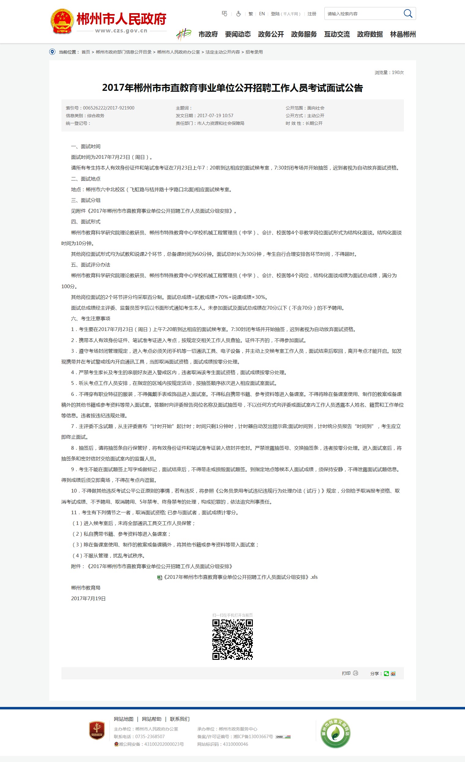 《2017年郴州市市直教育事业单位公开招聘工作人员面试分组安排》.xls