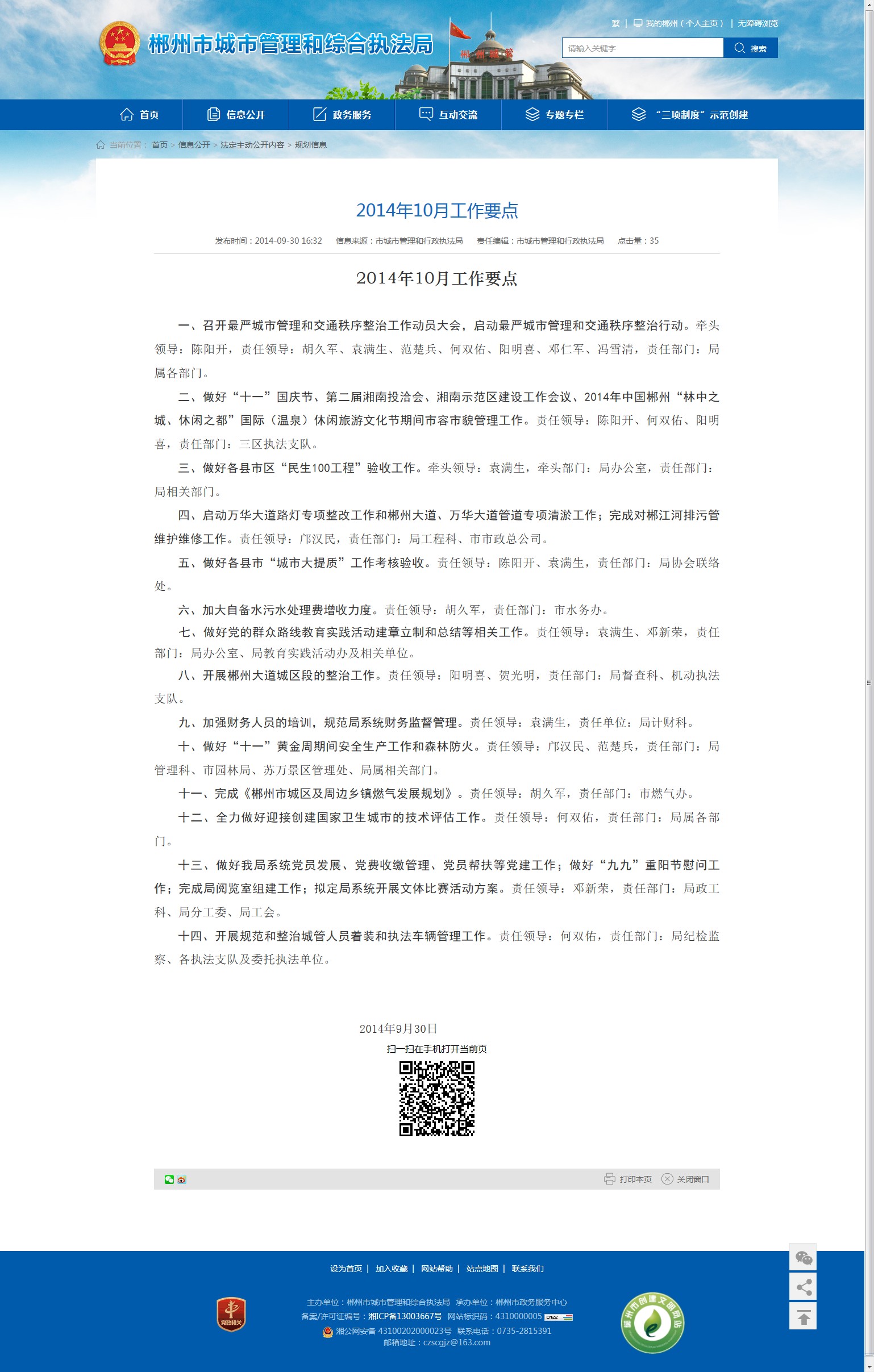 二、做好“十一”国庆节、第二届湘南投洽会、湘南示范区建设工作会议、2014年中国郴州“林中之城、休闲之都”国际(温泉)休闲旅游文化节期间市容市貌管理工作。责任领导:陈阳开、何双佑、阳明喜,责任部门:三区执法支队。